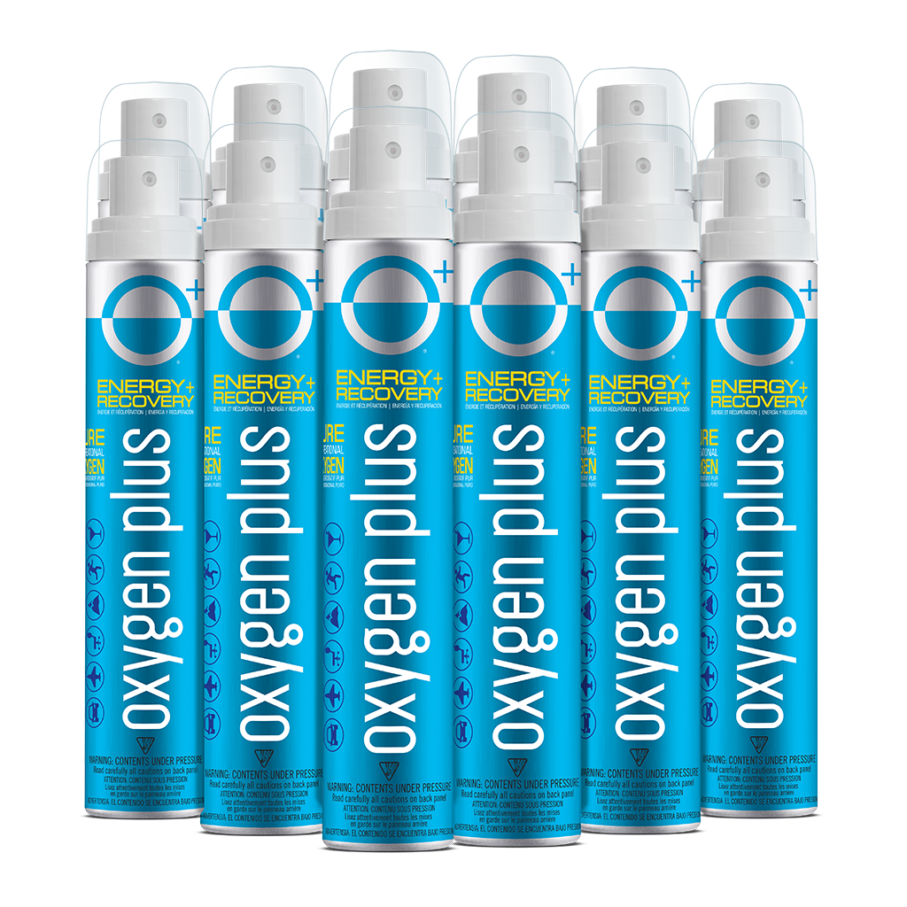 Keep revitalizing recreational oxygen on hand at work, home, and play with a 12-pack of the O+ Mini from Oxygen Plus. Pocket-sized yet power-packed with supplemental oxygen, each stylish O+ Mini oxygen canister contains more than 24 deep breaths. After a long day or late night, a few deep breaths of O+ oxygen can help restore your body’s depleted oxygen levels to normal, healthy levels — so you feel more like you again. The O+ Mini measures just 4 inches tall by 1.25 inches wide, and weighs 1.5 ounces. Unlike larger, bulkier canisters, the durable O+ Mini easily fits it in your pocket, purse, desk drawer, gym bag or ski pack. It's an on-the-go energy and recovery tool for a quick and convenient pick-me-up.