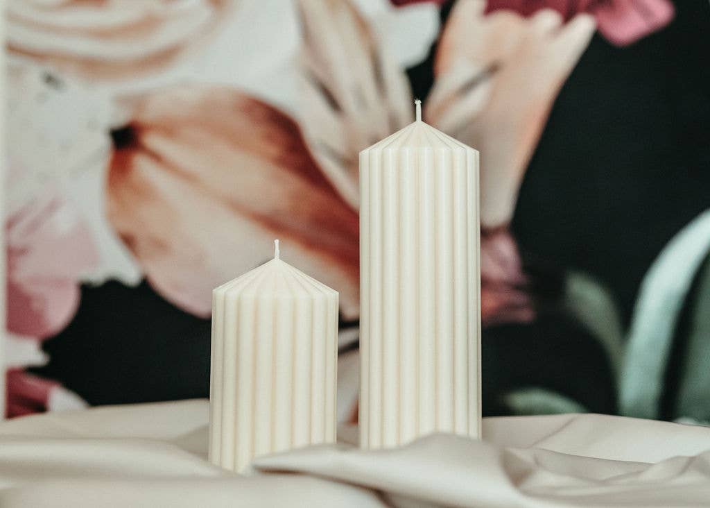 .Handpoured with Soy/Beeswax Blend ,no Toxic Additives .Phthalate Free Fragrance oils and Essential oils .Dye Micas derived from Fruits and Vegetables .Cotton Wicks .Vegan Friendly,Pet Friendly .Handpoured in Vancouver .Make sure to burn on a candle drip plate, one that is able to contained the wax when it melts. .Do not leave unattended To optimize burn time and prevent tunneling, be sure .Clean and Simple candles for an aesthetic lift of any space. .This candle may also come Non-scented OR scented. .When burning we recommend placing on heat resistant surface. .Burn on a candle drip plate, one that is able to continue the wax when it melts .This candle burns for about 20 hrs Large, 6hrs Small .This candle is made to order. -Designed for Decorative Purposes - Small H 8.6cm x W 7.5cm -Large H 11.6cm x W11.5cm