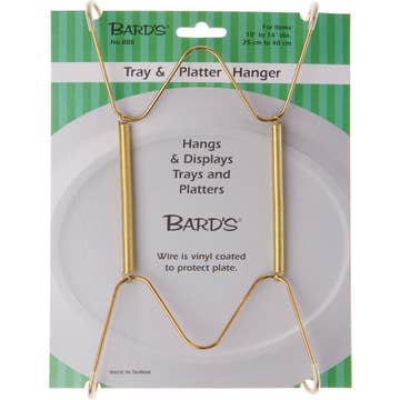 The durable, brass coated hangers are connected by a flexible coiled wire that easily conforms to most plates and features clear coated vinyl tips and sleeves to prevent scratches. Includes hook and nail for hanging. Available in 6 Sizes. 3" - 5" Plate Hanger Dimensions: 2.1" L x 0.4" W x 3.1" H, 0.32 oz Fit items 3" - 5" Hold items up to 2 lbs on the wall 5" - 7" Plate Hanger Dimensions: 3" L x 0.5" W x 4.5" H, 0.32 oz Fit items 5" - 7" Hold items up to 2 lbs on the wall 7.5" - 9.5" Plate Hanger Dimensions: 2.9" L x 0.4" W x 6.5" H, 0.64 oz Fit items 7.5" - 9.5" Hold items up to 2 lbs on the wall 10" - 14" Plate Hanger Dimensions: 3.5" L x 0.5" W x 8.8" H, 1.28 oz Fit items 10" - 14" Hold items up to 2 lbs on the wall 14" - 20" Plate Hanger Dimensions: 3.8" L x 0.5" W x 11" H, 1.92 oz Fit items 14" - 20" Hold items up to 2 lbs on the wall 15" - 30" Plate Hanger Dimensions: 6.6" L x 1" W x 13.5"H, 2.88 oz Fit items 15" - 30" Hold items up to 5 lbs on the wall
