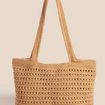 This sand tote is the perfect blend of coastal + boho. The knit pattern is gorgeous, and the material is flexible without losing shape. Such a cute grab-and-go summer bag.