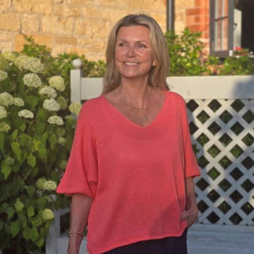 In a super soft modal blend with a lovely drape, our lightweight Summer knit top comes in a range of 15 pastels and vibrant colours to complement your Summer wardrobe. The V-neck and three-quarter length sleeve make this a smart alternative to a traditional T-shirt. Team with our linen flared trousers for a super smart-casual look! Size One size fits UK 10 - 16 Length from back of neck to hem 53cm Fabric 55% Modal, 45% Acrylic Care Instructions Wash by hand or machine wash at 30C on a cycle that is suitable for delicate woollens, using a fabric soap recommended for wool. Short spin and reshape whilst damp. Dry flat, or if this isn't possible hang over a thick towel on an airer. A few shots of steam once dry will remove any wrinkles. Do not touch the garment with the iron when steaming! Made in Italy