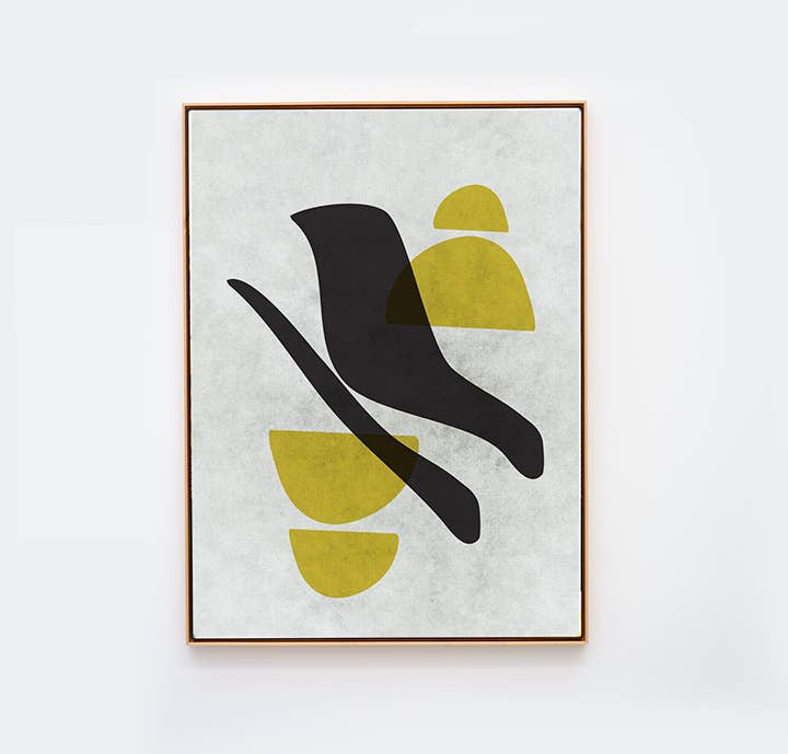 If you're a bird, I'm a bird... The Six Striped Birds print features abstract ivory and black birds flying together against a plush green background. All ALEX'S prints are giclee archival pigment fine art prints. Prints include a thin white border around the perimeter of the artwork. Prints are packaged in a clear sleeve with a cardboard backer and keepsake postcard.