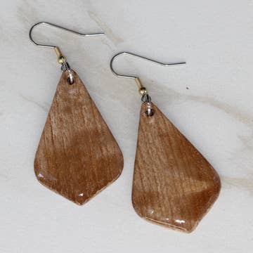 Twisted Robles wood and sparkling light blue: for making everyday special and special occasions more fun. "Notbeige-notboring” (adj.) describes bold, colorful art/jewelry designed by contemporary artist Mary Lindseth. Small batch jewelry made in the USA. Signature color palettes, wooden beads, surgical stainless steel, acrylic and Czech glass beads, lots of love. Unique, upcycled and always upbeat.