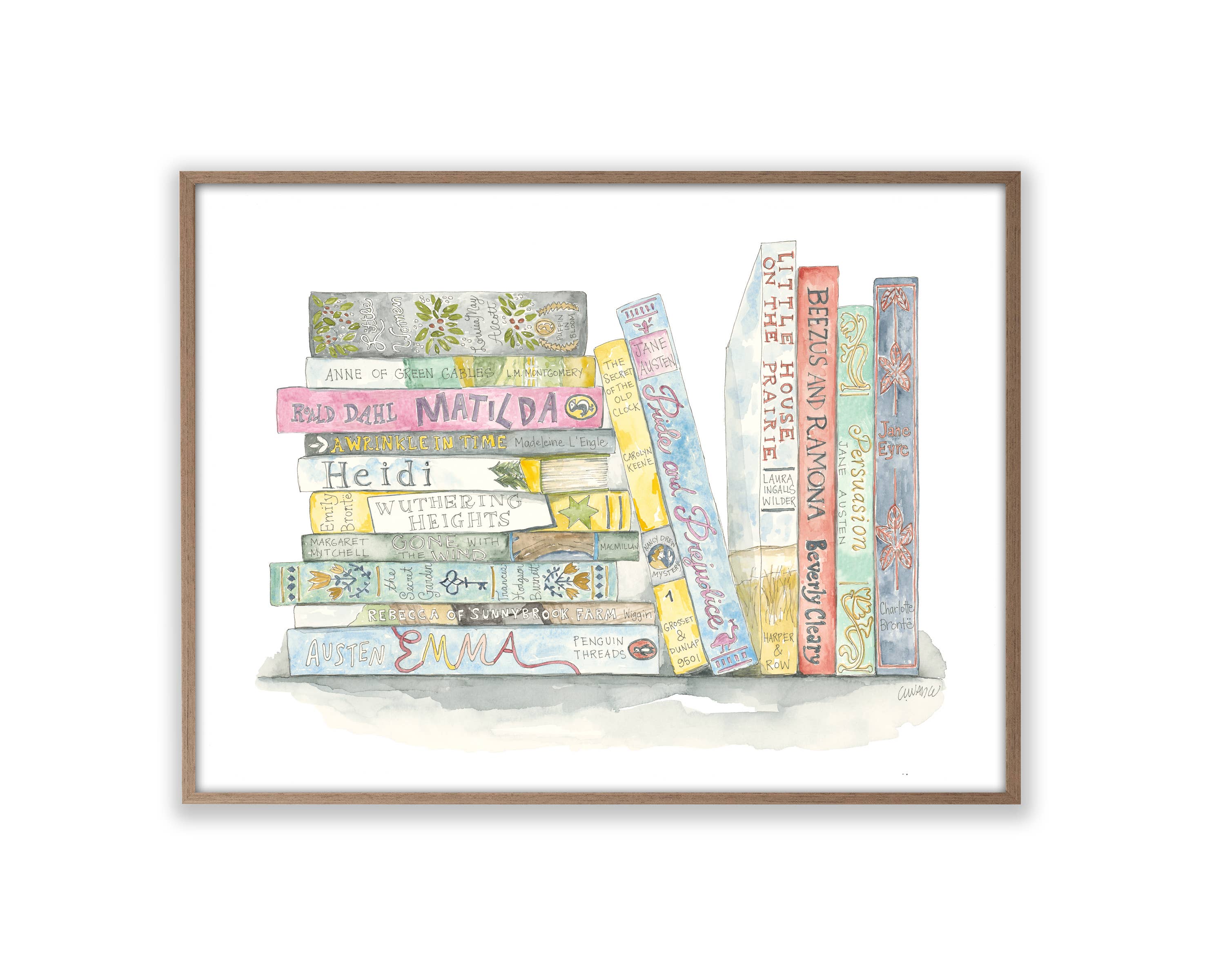 This high-quality print measures 11 x 14 inches. The frame is not included. There is no need for custom framing. Premade frames are easy to find for this standard size. The print ships sealed in a clear cello bag along with a sturdy backer board. This design is also available as a magnet and greeting card. Made in the USA.