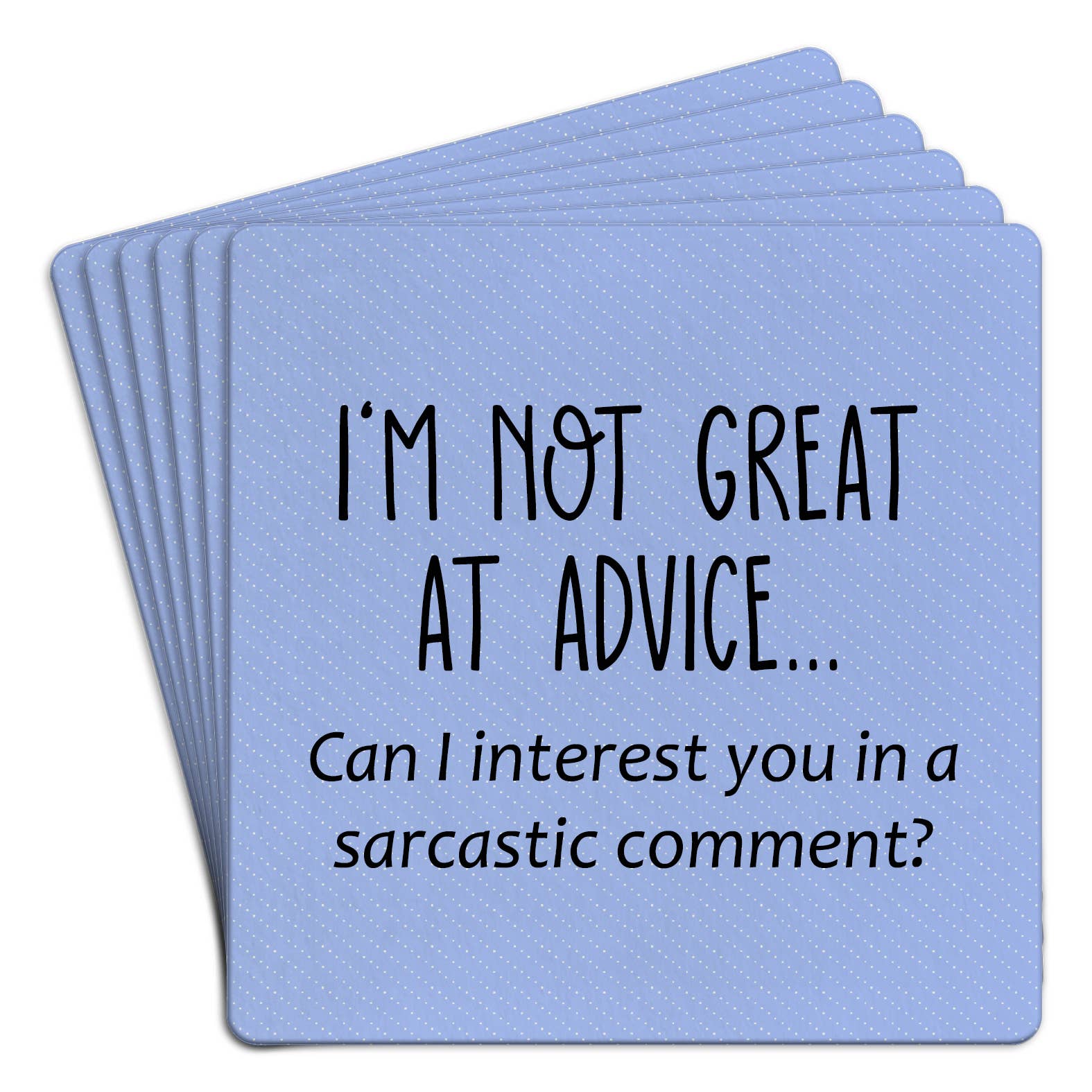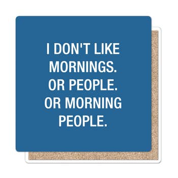 At Drinks on Me, we create laugh-out-loud moments — because your drink deserves a sense of humor. Add a pop of funny to your customers' coffee tables, kitchen counters, & bar carts with these witty coasters. They’re bold & hilarious! Perfect for coffee, tea, cocktails, beer, wine or brunches, our coasters protect surfaces while adding kitsch charm shoppers will love. Ideal for hostess gifts, housewarmings, birthdays, holidays, or funny party favors, they add a playful touch & humor to any home. A great upsell item for customers looking for small, funny, giftable home accessories. We also offer fantastic rotating floor and counter displays that fit within only 1 square foot of space and will have customers stop and laugh and read them all! A perfect fit in your barware, gift, party, home decor, stationery, floral or greeting cards sections in the store. Coasters are 4”x4” and made with resin with a cork backing and round corners. Made in the USA.