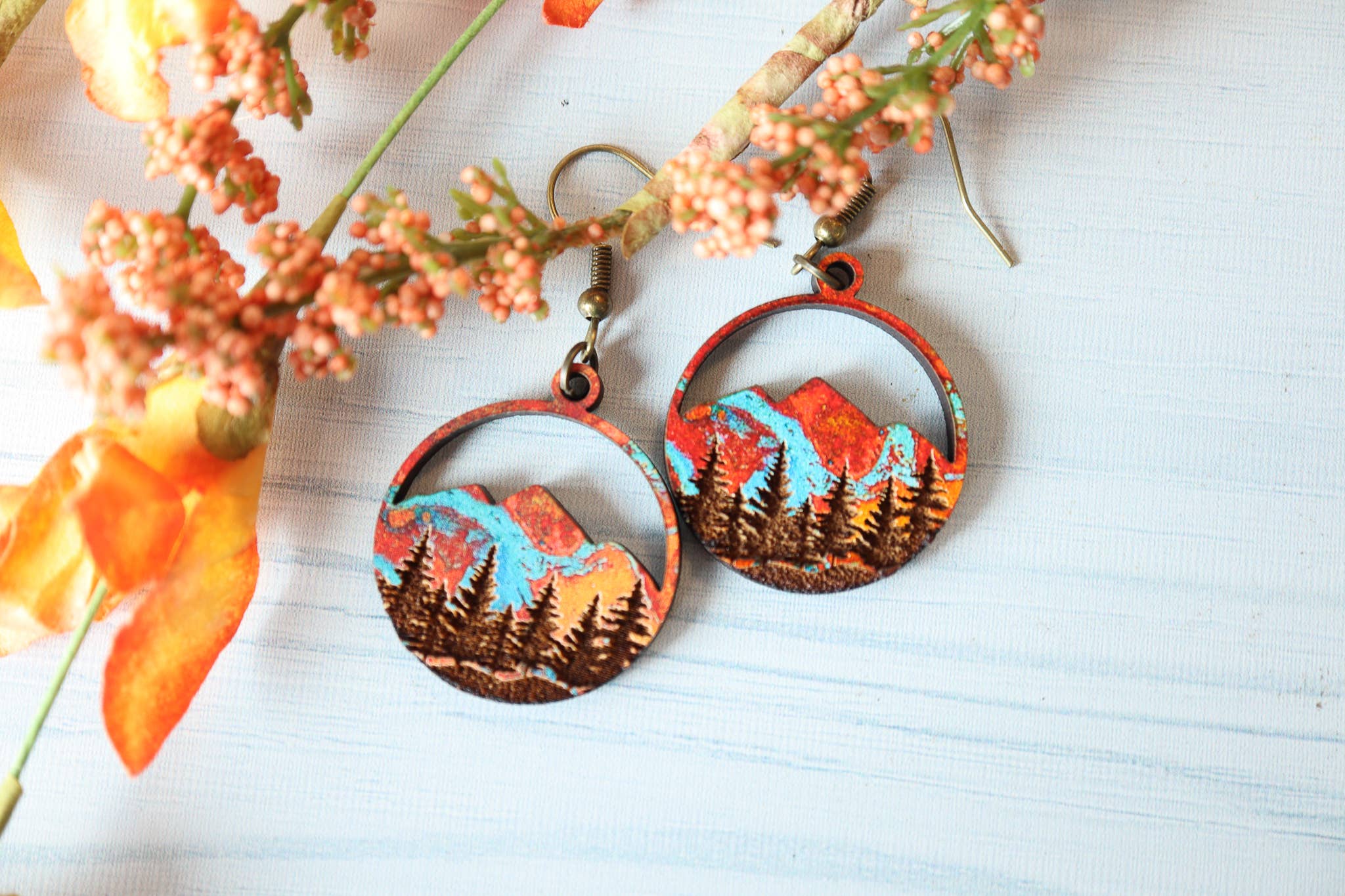 Weathered Mountains Wood Dangle Earrings