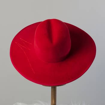 Port. Giovannio X Cha Cha's House rancher with muti media band and feather. Snake skin band. Adjustable sweatband for secure fit. 100% Wool Ex. Trim. Spot clean only. Fall/Winter.