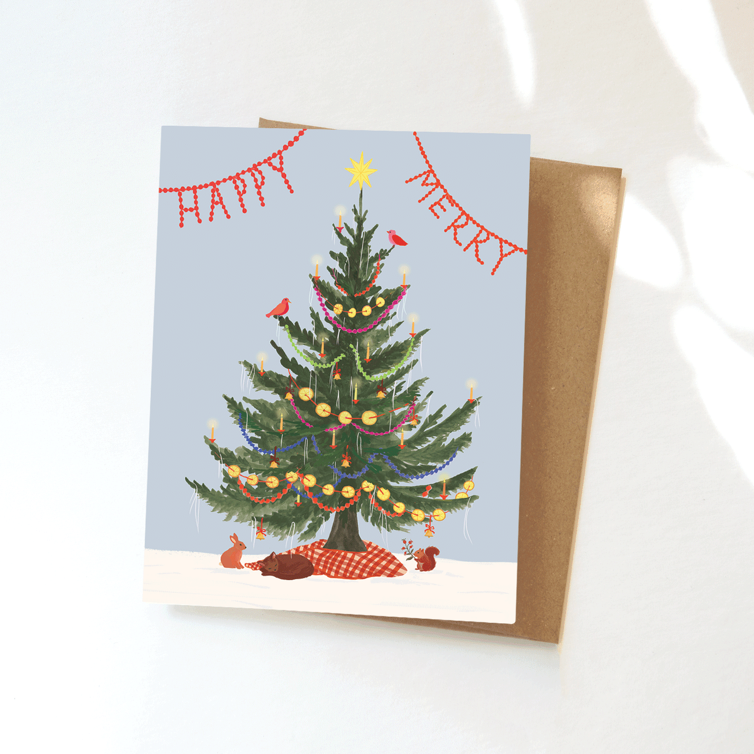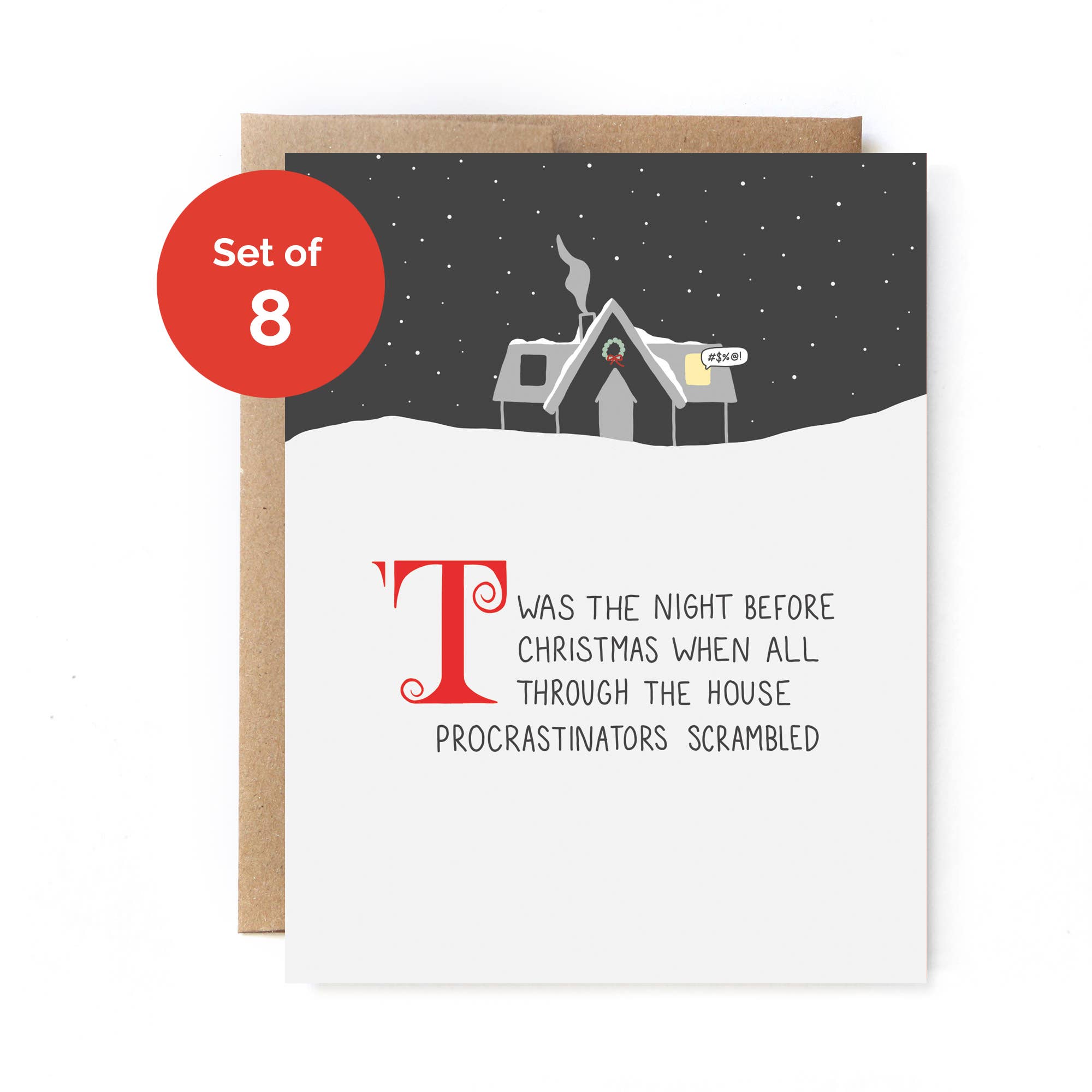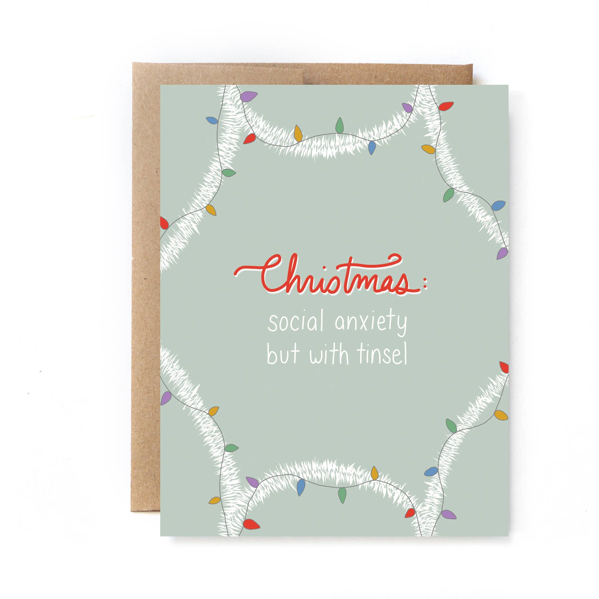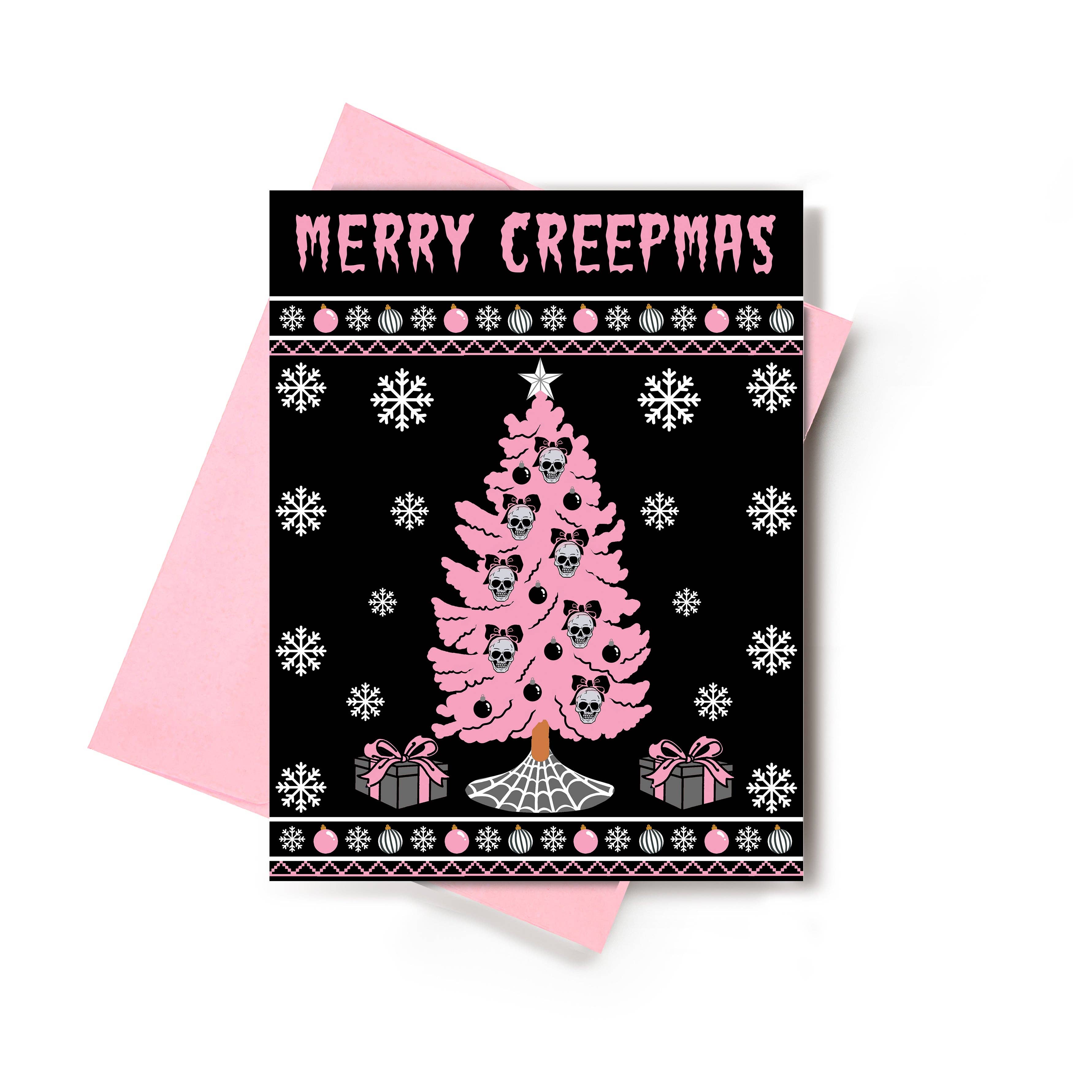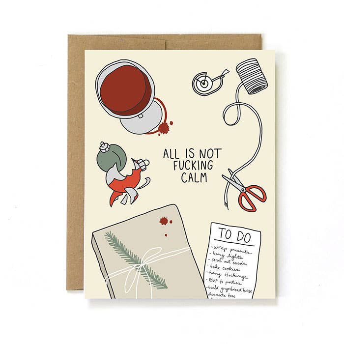 Funny Holiday Card - Recycled Paper - Tree Corpse - 5.5 in. x 4.25 in. (A2) folded card - Includes a 100% recycled kraft envelope - Professionally printed on 130# recycled card stock - Packaged in a clear sleeve (but you can request plastic-free!) - Designed and printed in the U.S. - Blank inside for buyer's own personal message Unblushing in a woman-owned, family-run business based in southern California.