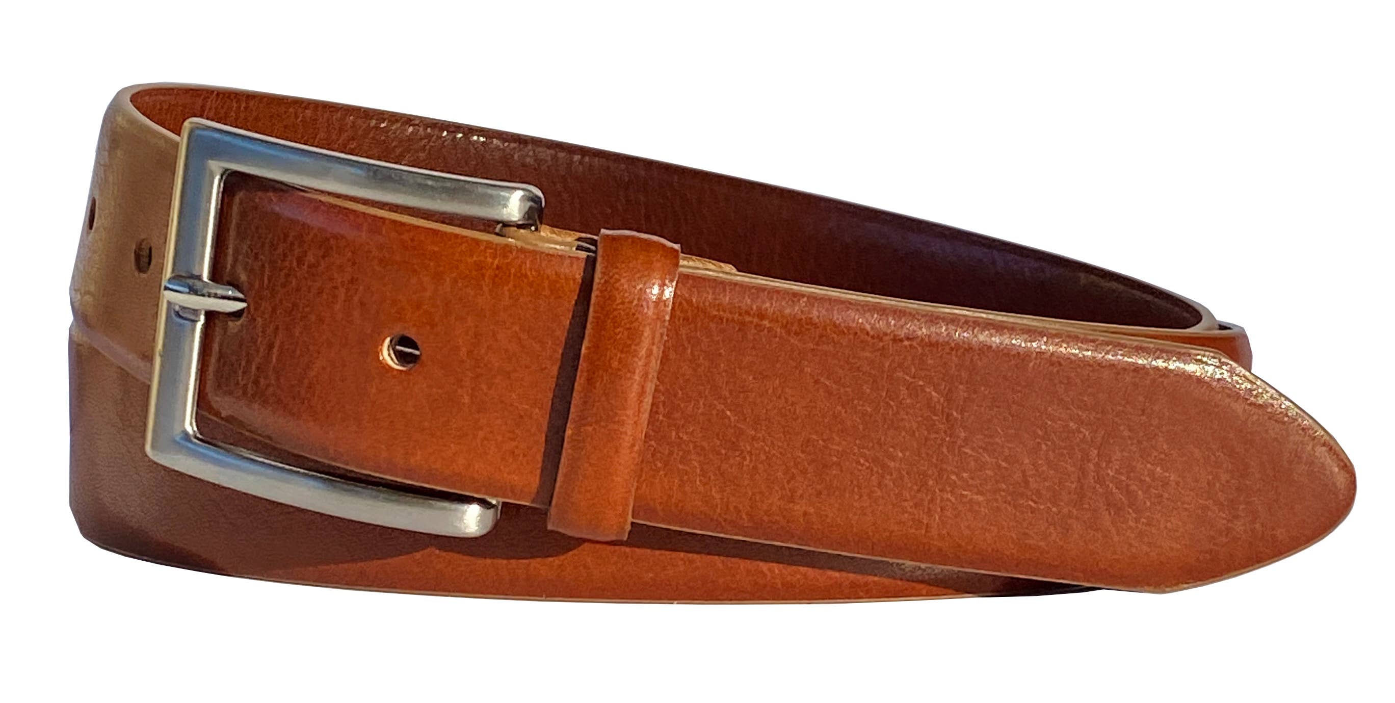 30 mm genuine leather boys jean belt with single leather keeper. Brushed nickel buckle and matching rivet