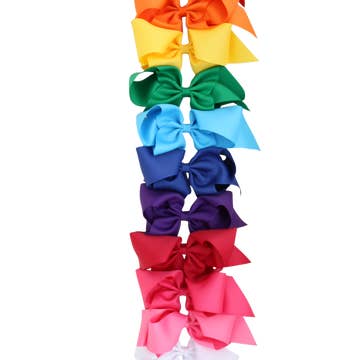 * The bows are crafted from velvet ribbons in pale yellow, dusty lilac, mint, pale peach, peach, ivory, blue, pale pink and dusty pink * Gold tone barette clips * Suitable for ages 4+ * Set of 10 in 10 colors * Pack dimensions: 2.375 x 6.25 x 0.5 inches Product code: 267097