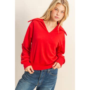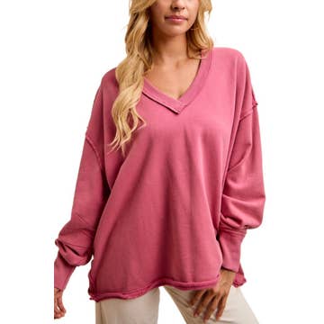* Style No.: DZ25F261 Experience the allure of timeless style with our V-neck pullover. Perfect for transforming any outfit into a statement of elegance and comfort. Its relaxed fit ensures effortless wear, while the ribbed cuffs and subtle V-neck detailing add a touch of vintage charm. Ideal for layering over tees or under jackets, this pullover transcends seasonal trends, making it a staple for both casual outings and stylish gatherings. Model Is 5' 8" Tall, 32" Chest, 25" Waist, 34" Hips And Wearing A Size Small Imported. Designed In The USA