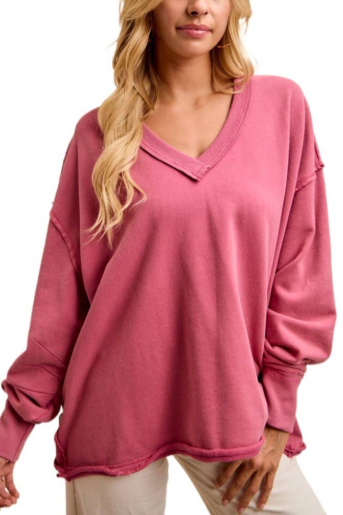 Oversized V-Neck Sweatshirt With Raw Edge Detail
