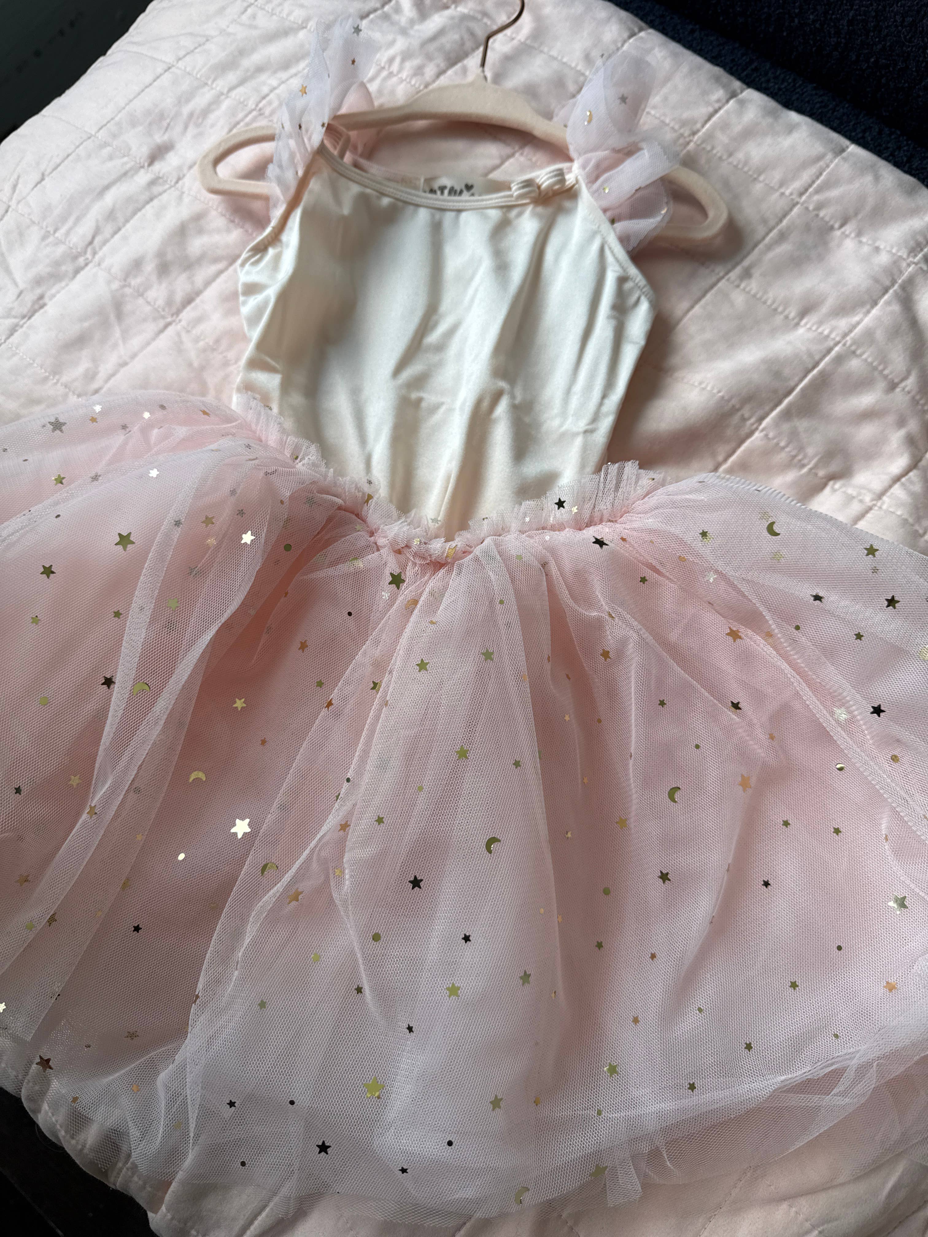 Dazzle and twirl in our Sparkling Sequin Tulle Toddler Dress! Delicately crafted for little ones, it's a shimmering dream come true. Perfect for special occasions and everyday magic! Features: * Adorable star and moon sequins * Buttoned crotch for easy on and off * Detachable ballet skirt * Elasticated waist Note: Hand wash only. Do not tumble dry, steam pressing gives better results.