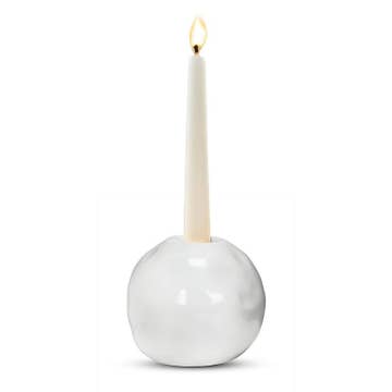 Scrambling to find a gift? Over-easy peasy. This candle holder makes an eggcellent choice! Be a sunny side upstanding gift giver! It's not a hard boiled decision! These unique candle holders feature a handmade ceramic "egg white" base and a hand poured beeswax tea light "yolk", plus a sprinkling of "salt and pepper." You'll receive an assortment of salt and pepper eggs within a case. Approximate burn time: 4 hours. This item is made to order. Please allow 2–4 weeks for shipping. Glazed stoneware, 100% beeswax 5" x 3" x 1 1/2" Handmade in St. Louis, USA