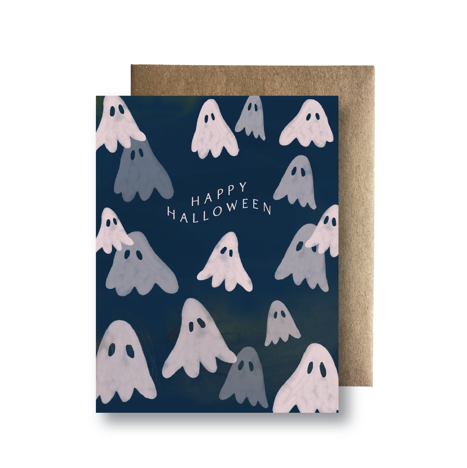 If you've got a boo out there, send them some happiness this Halloween! This little ghost will make them feel loved. DETAILS: * A2 size (4.25 x 5.5 inches) folded card professionally printed in Nashville, TN * Printed on 100 lb. white, semi recycled card stock * Comes with matching A2 kraft grocery bag envelope * Carefully packaged in protective cellophane sleeve * Blank inside for your own personal message * Product details and brand logo on back of card * Designed by Ava Wolf