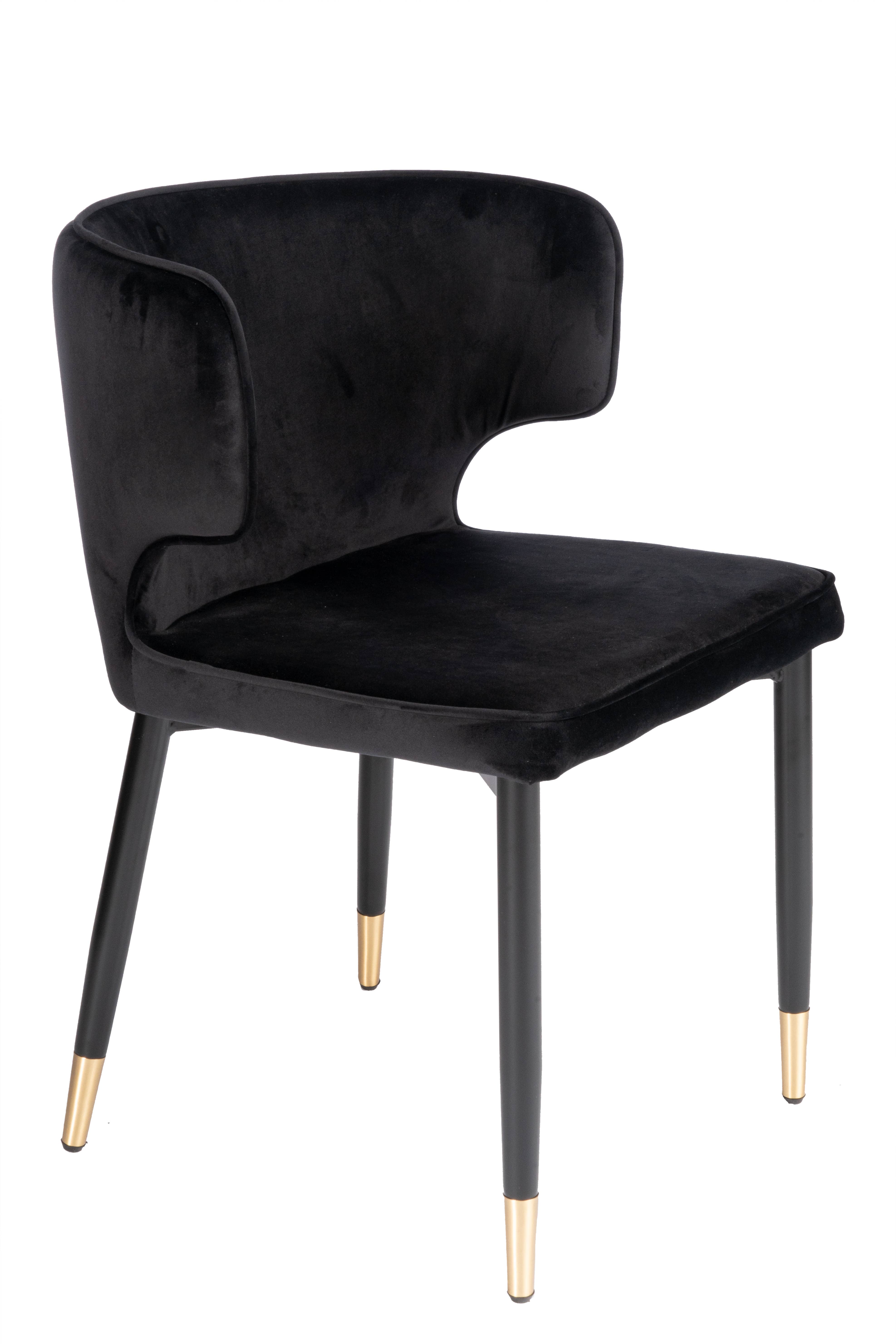 This black velvet chair with gold is stunning. Great quality and very comfortable to sit in. I've already ordered more! Highly recommend.