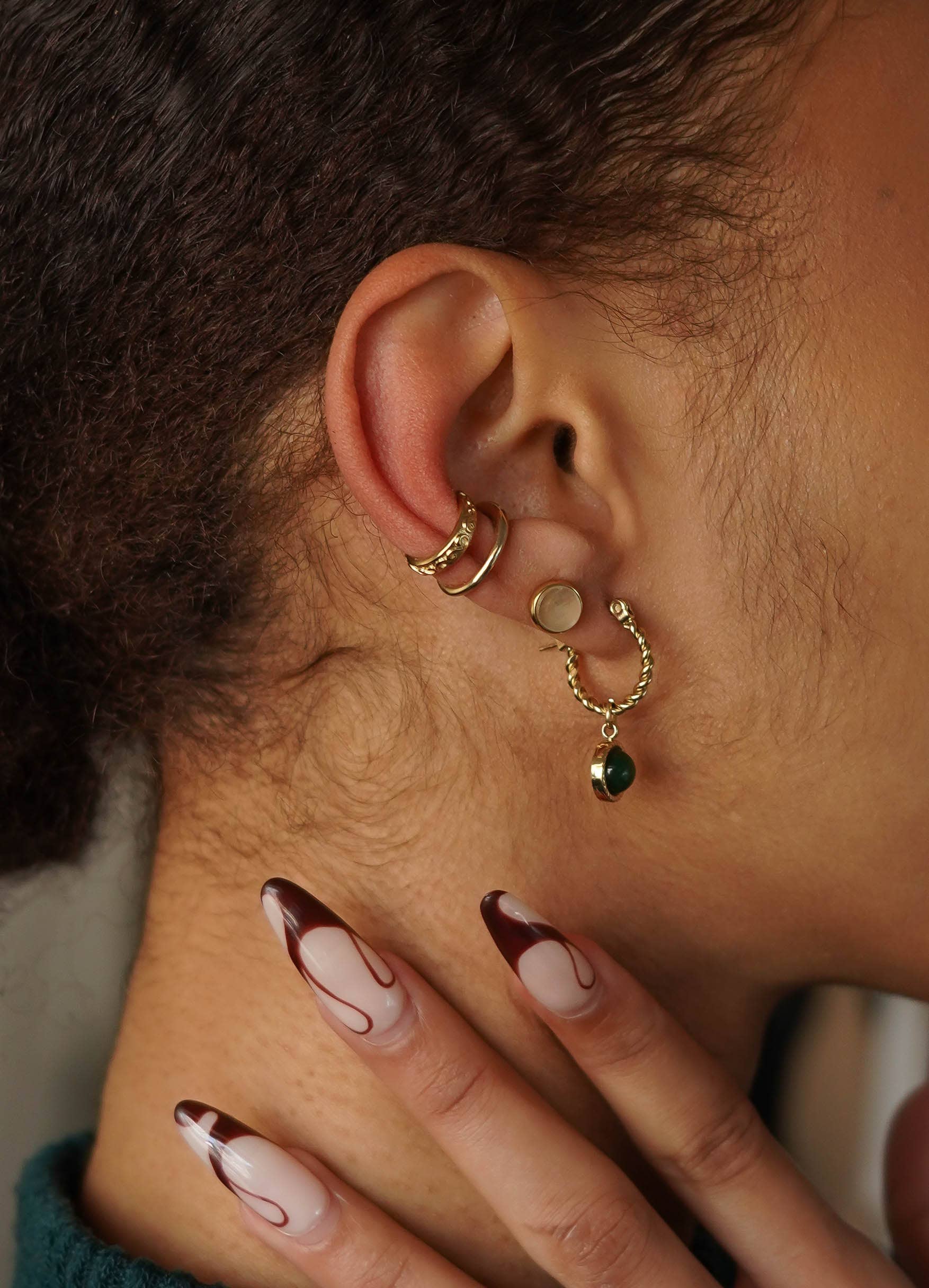 Creole-shaped earrings, a row of pearls and natural stones with 4 small fringes, oval stone pendant with a mini sun pattern stuck on it, crochet clasp Material: stainless steel jewelry Available with natural stones Malachite (green), Labradorite (gray) and Lapis Lazuli (blue) A true lucky charm, our jewels are delicate testimonies of friendship, love, a personality that is discovered... Find yours in our new collection! Occasion: Party, Cocktail, Casual, Day Party, Wedding, Wedding Guests