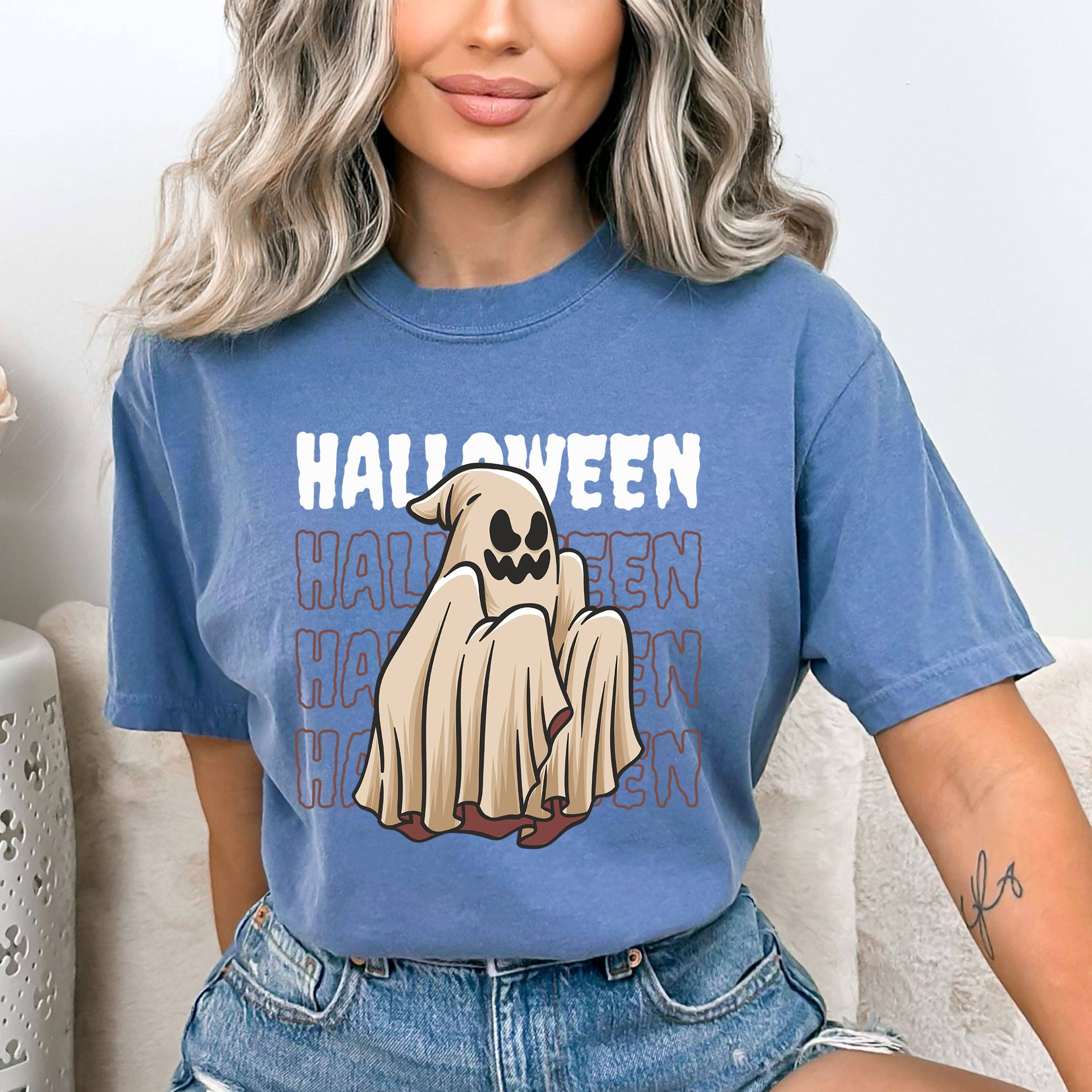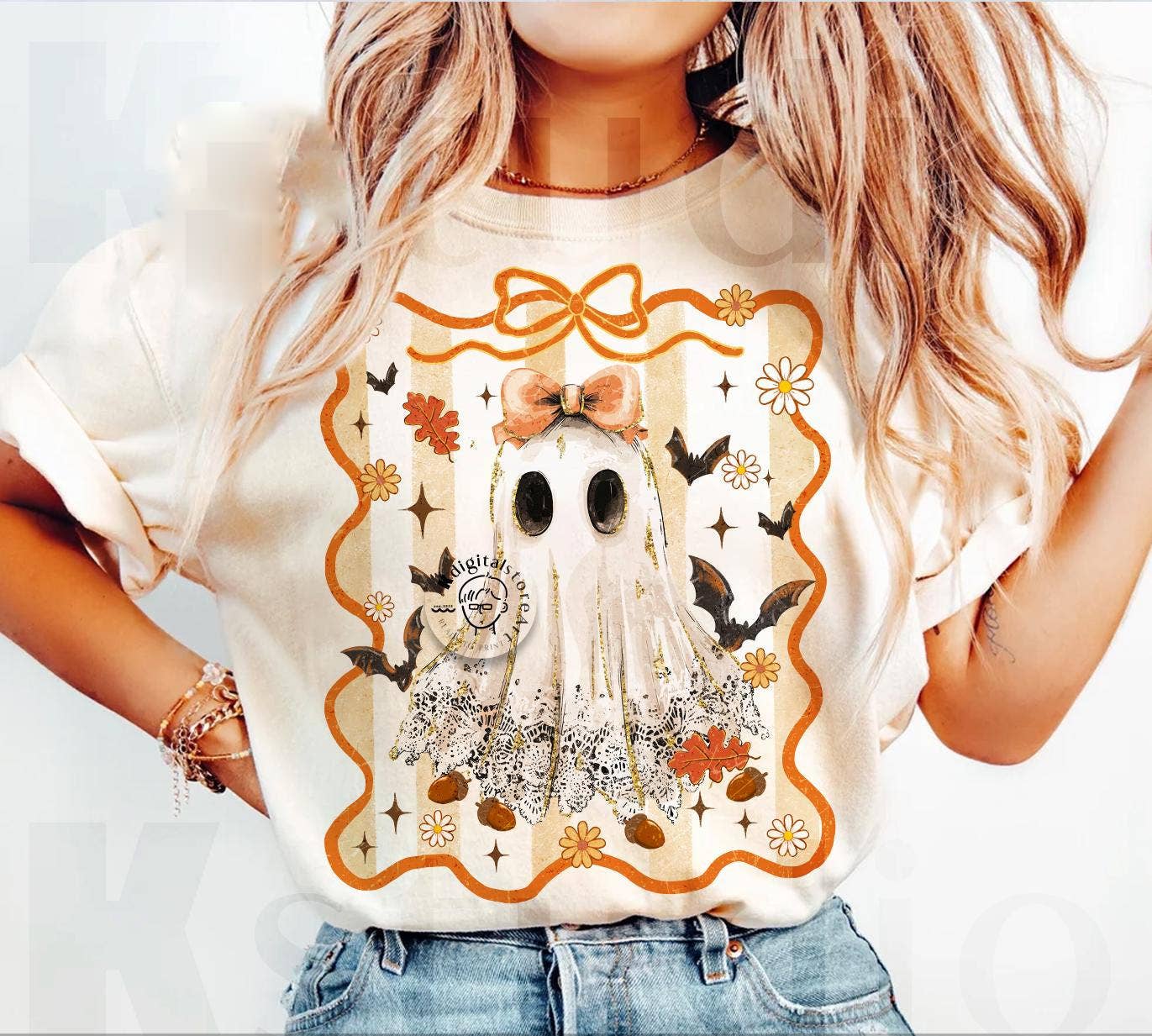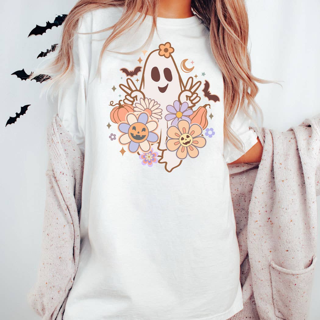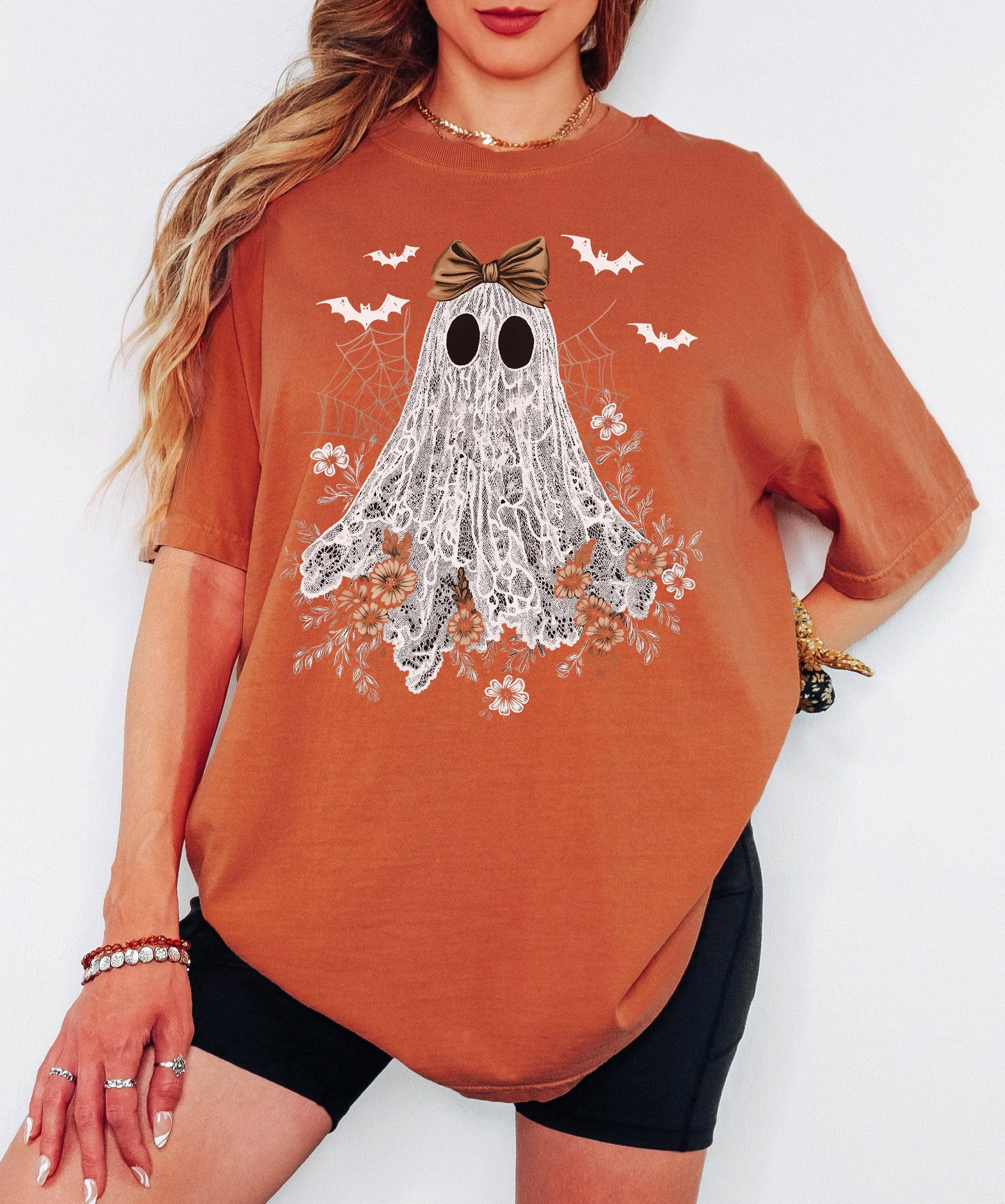 Cute Ghost Shirt, Fall Halloween With Bows And Flowers Sweater Unisex T-Shirt (Gildan 5000) - 100% cotton - Medium fabric (5.3 oz/yd² (180 g/m²)) - Size available: S, M, L, XL, 2XL, 3XL, 4XL, 5XL Unisex Sweatshirt (Gildan 18000) - 50% cotton, 50% polyester - Medium-heavy fabric (8.0 oz/yd² (271.25 g/m²)) - Size available: S, M, L, XL, 2XL, 3XL We use the direct to garment printing technique for a vibrant and long-lasting print. For more information, please feel free to contact us.