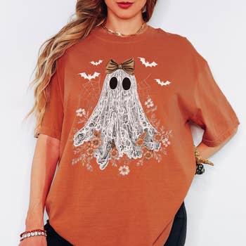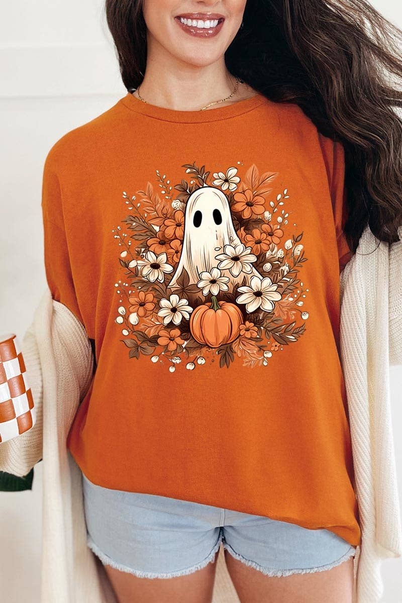 Cute Ghost Tee, Fall Halloween With Bows And Flowers Sweater