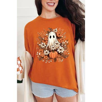 Wholesale Cute Ghost Tee, Fall Halloween With Bows And Flowers Sweater
