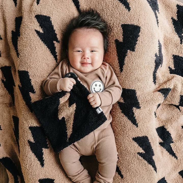 Checkered Plush Baby Blanket | Latte