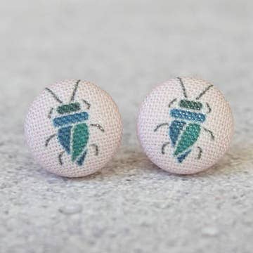 Beetle Fabric Button Earrings