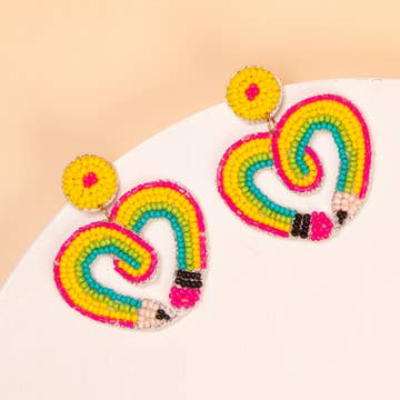 • 14k gold-filled wire and chain. • Earring measures approximately 3.5" long. • I love wearing these colorful pop earrings with an all white or cream outfit so it stands out and adds some character!