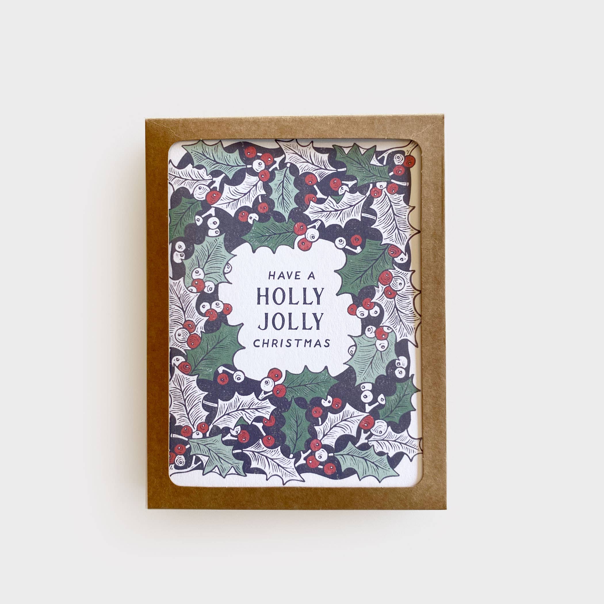 Beautiful paper. Made by beautiful people. For a beautiful cause. (Upcycled + Fair Trade + Gives Back) Our handmade deckled edge paper collection is letterpress printed in-house late at night with lots of coffee. This card is meant to be treasured for years to come. Handmade paper beautiful enough to frame and helps us ensure there was no slave labor in our supply chain. 10% goes to fight for human rights in the supply chain. Saying: Merry Christmas (Holiday Berries) Box set of 5 FLAT CARDS 4.25"W x 5.5"L Color: White Red Ink Letterpress + Gisele Print Red Flat Flap Envelope Sleeved with Recycled Material and labeled. A2 FLAT CARD, Blank Back to write on. Ethically made by Artisans, Hand printed in our USA studio