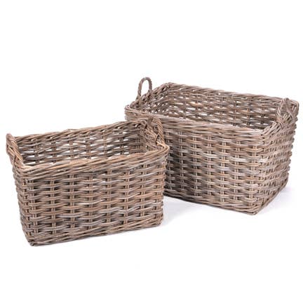 Rattan Rectangular Storage Basket with Cutout Handles