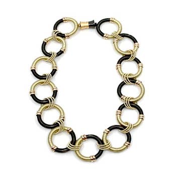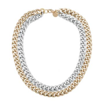 Our classic cool Colette link in beautiful colors & matte metallic highlights. Specifications * Italian Resin * 40cm length * 95 grams * Adjustable brass chain & lobster claw closure * Made in Italy