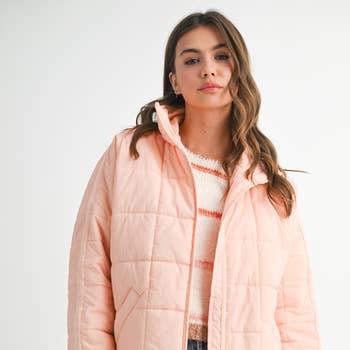 * Style No.: DZ25E786 This Trendy Jacket Features A Relaxed Silhouette With Structured Quilting And An Adjustable Drawstring Hem. The Versatile Design Is Perfect For Colder Months, And Can Be Layered Over A Turtleneck Or Casual T-Shirt For A Versatile Look. Style It With High-Waisted Jeans And Ankle Boots For A Chic, Urban Look. Combining Style And Comfort, This Outerwear Piece Offers A Fresh Take On The Classic Winter Wardrobe. Self: 88% Polyester 12% Nylon Lining: 100% Polyester Model Is 5' 9" Tall, 32" Chest, 23" Waist, 35" Hips And Wearing A Size Small Imported. Designed In The USA