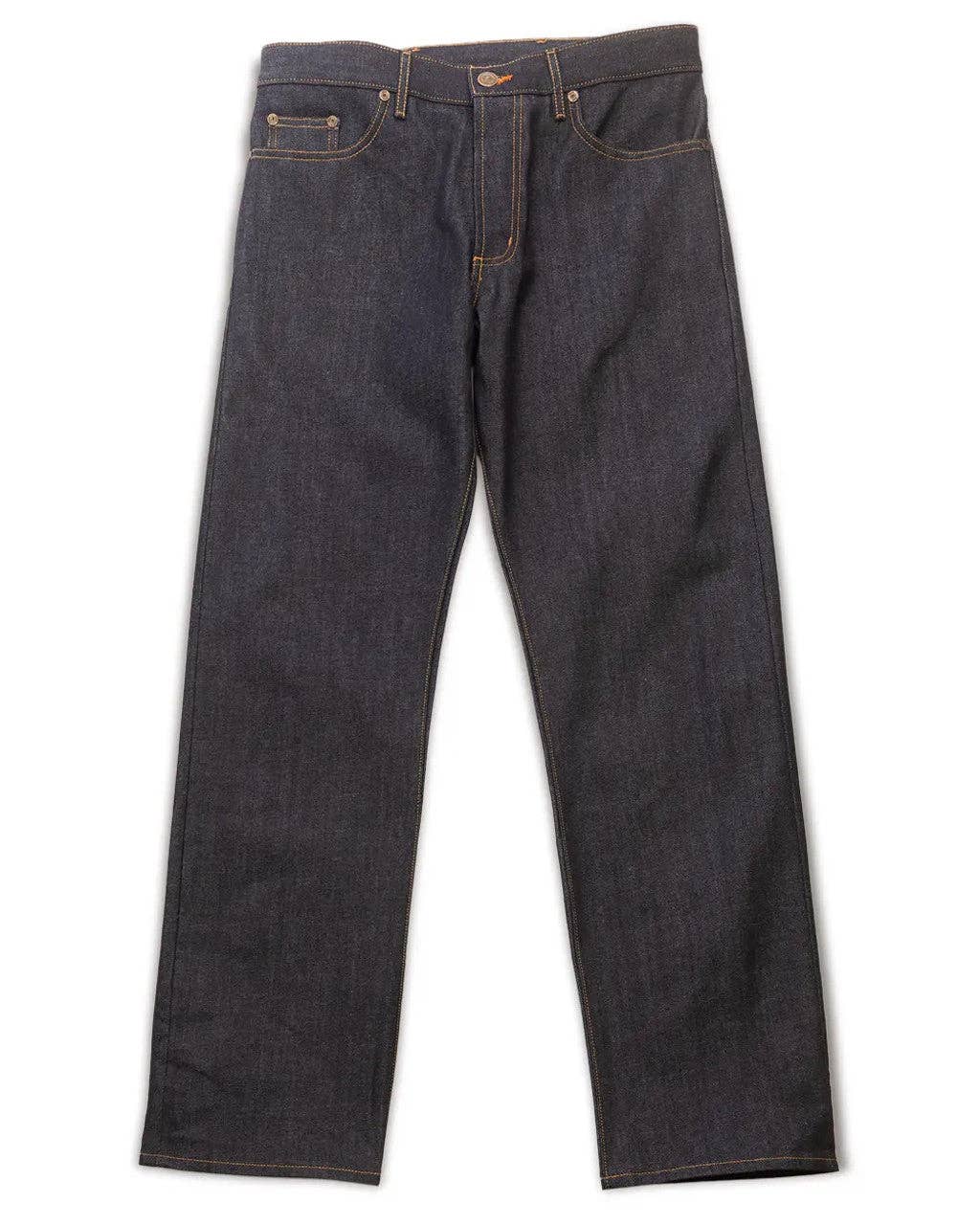 A great pair of jeans has always been the calling card of the American lifestyle. Beginning in the gold rush days, you could tell if a miner was worth his salt by taking one look at his jeans to see whether they were ready for the job or were falling apart. Our Ball and Buck denim was created in the mold of those early blue jeans--rugged, built-to-last, and great looking. The raw denim comes from Cone Mills which is synonymous with long-lasting denim that develops a beautiful patina over time. As with many Ball and Buck products, this denim starts out in its unmolested raw state--free of factory sanding, washing, and any other corner cutting so each pair of denim starts like a blank canvas and develops a unique custom wear and appearance for each wearer. In this regard these jeans are like a fine pair of boots--stiff the day you put them on, but quickly become the most comfortable and longest lasting pair of boots you'll own. Available in our 6 Point fit which has slight taper from the knee to the hem, and our 8 Point fit which is a traditional straight leg cut for over the boot wear. FEATURES * 13.25 oz Cone Mills Denim - 100% Cotton * Ball and Buck Original Camo Pocketing * Signature Shotgun Shell Shank Button * YKK Auto-Lock Brass Zip Fly * Double Reinforced Seat to Prevent Blowouts * Reinforced Stress Points Using Bar Tacks and Rivets * Classic Fit at Hip Through Thigh with Taper from Knee to Hem * Made in Los Angeles, CA of Globally Sourced Materials