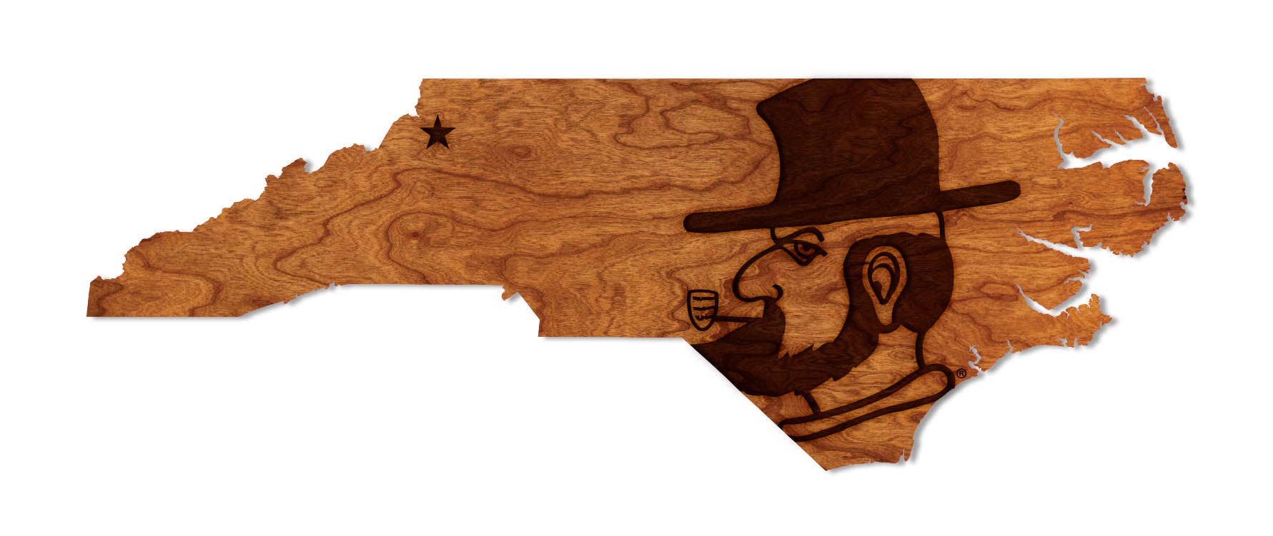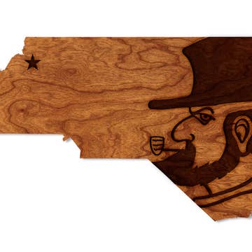 We are excited to introduce our hand-cut, solid wood, 2-foot North Carolina wall decor, that can be customized to have your town on the front. If you have a lot of different towns around you, the word home is an option as well. Our wall decor is meticulously crafted by skilled NC artisans, making each piece truly unique. The solid wood construction ensures durability and longevity, allowing your customers to enjoy this beautiful piece for years to come. The 2-foot size is perfect for creating a statement piece in any room, office or business space, and is sure to catch the eye of passersby. The states all come with a wire hanger to hang or you can sit them on a shelf. The states are 24"L x 8"T x 1"W HandCut from solid poplar wood piece. The town or home comes in birch left in it's natural color but sealed with a clearcoat.