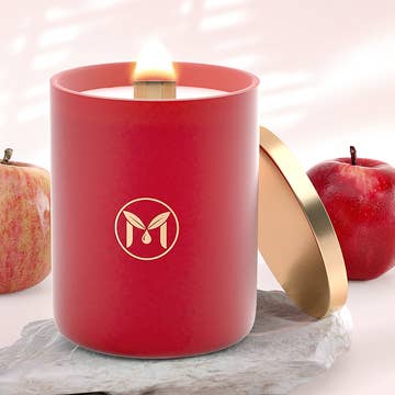 Our MacIntosh Apple Candles have an incredibly strong fragrance with "right from the tree" character that throws an aroma to delight on any seasonal day. Burn Time: Approximately 50 Hours Wax: Produced from US Grown Soy Beans. All Natural Soy Wax Wicks: Cotton Eco-Wicks, Lead & Zinc Free Net Weight: 8.5 Ounces Material: 50% Recycled Glass Dimensions: Width 2.75", Depth 2.75", Height 3.25"