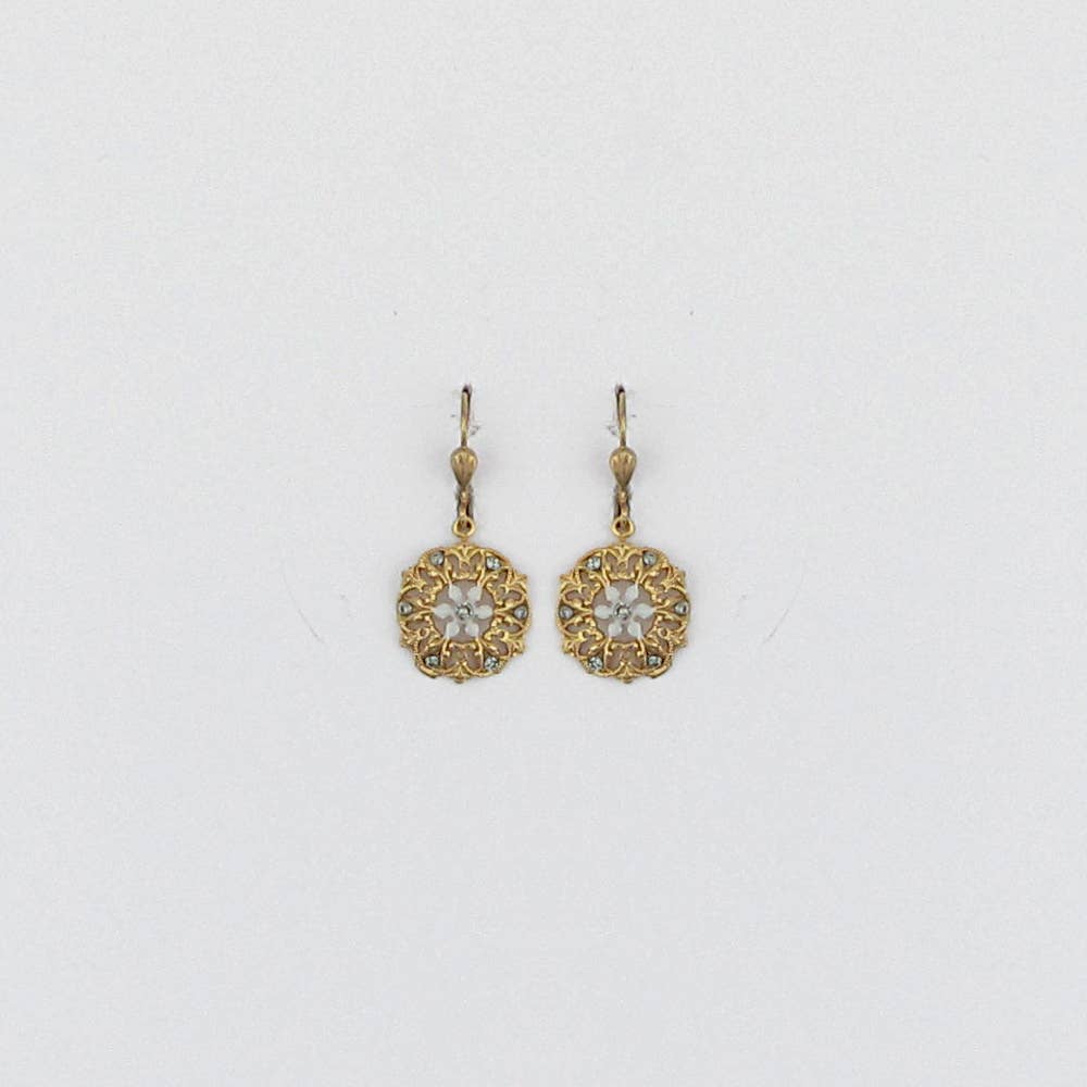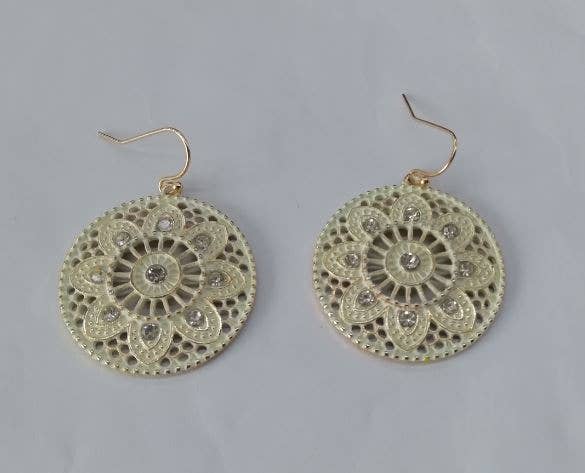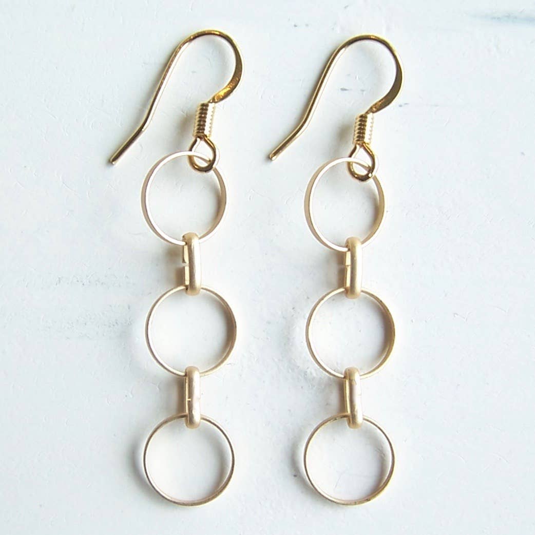 Part of our brushed gold collection, the Dahlias have an elegant, earthy vibe. The Egyptian style gold finish has a brushed satiny feel that makes these earrings feel old and new at the same time. 20mm matte gold plated charms on surgical steel ear wires.