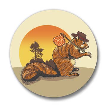 1.25” hard enamel collectible lapel pin with nickel backing. Bright red rubber backings and tiny details and cute facial expression. Collect a a little squirrel of your very own. She even has an acorn gift! Packaged with a an attractive recyclable card made with a subtle map pattern to add to your lovely retail display.