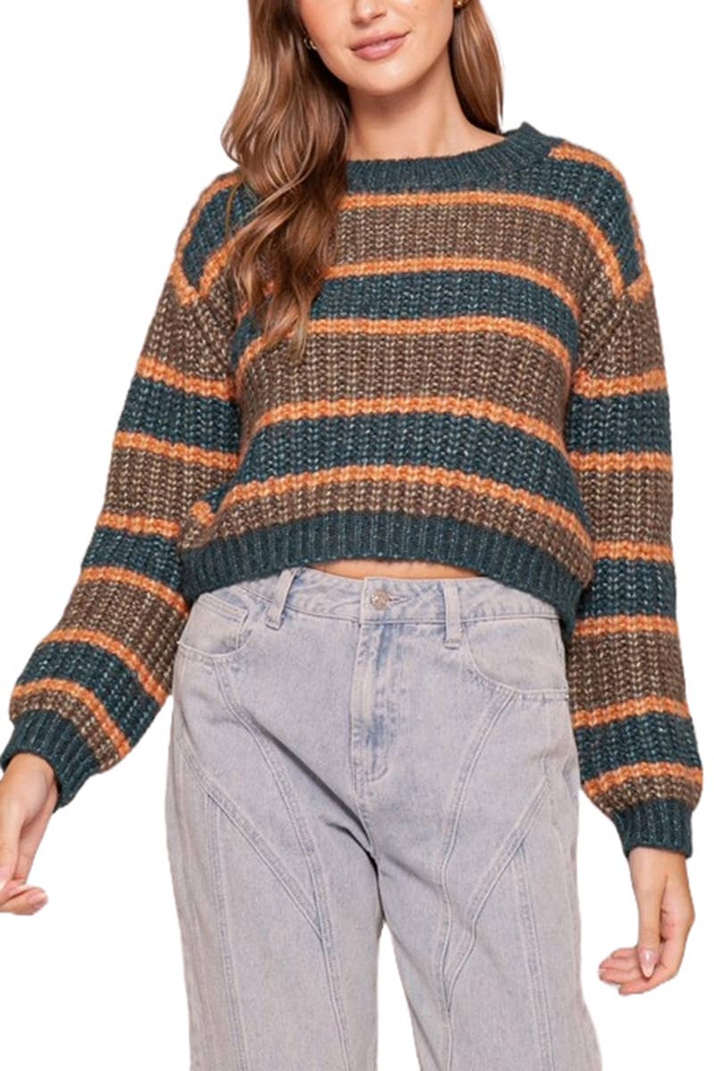 Cropped Cable Knit Sweater | 7/8 Bell Sleeve Pullover Women