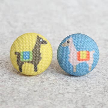Llamas Fabric Button Earrings