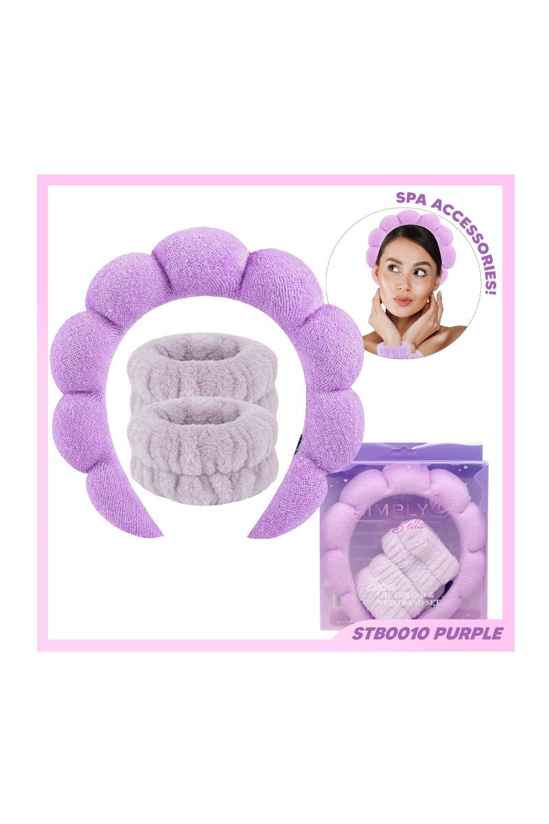 Quick Features: • Designed for skincare and makeup routines • Super soft & absorbent terrycloth • 3 piece set includes: • 1 headband to keep hair pushed back while cleansing or applying • 2 wristbands to prevent water from running down arms Merchandising Details: • Peggable packaging • Ships in a free counter display • Complimentary Lemon Lavender f
