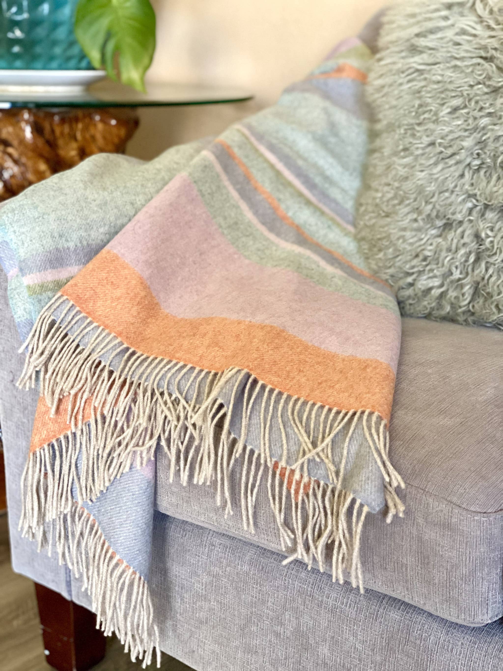This pink and cream woven merino wool cashmere reversable throw with fringe is the perfect accent you've been searching for. Features a woven solid color design that offers sumptuous softness and texture that you'll cherish for years to come. Made from 95% merino wool 5?shmere this blanket will make a great addition to any room it's added to. Add extra texture to your decor and turn your room into an inviting space. Perfect for your favorite chair, bed or lounging on the couch, this blanket helps bring a warm and fashionable flair to your space. 71" H x 51" W x 0.1" D Soft and comfy designer style accent throw blanket. Ideal for your chair, sofa, bed or fireside snuggling. Built to last, sturdy handwoven construction from merino wool and cashmere. A beautiful and fresh solid color design makes this throw easy to blend in with many looks. Dry Clean Only is suggested. Reversible design allows you to enjoy on two sides and includes 2" of fringe on both ends.