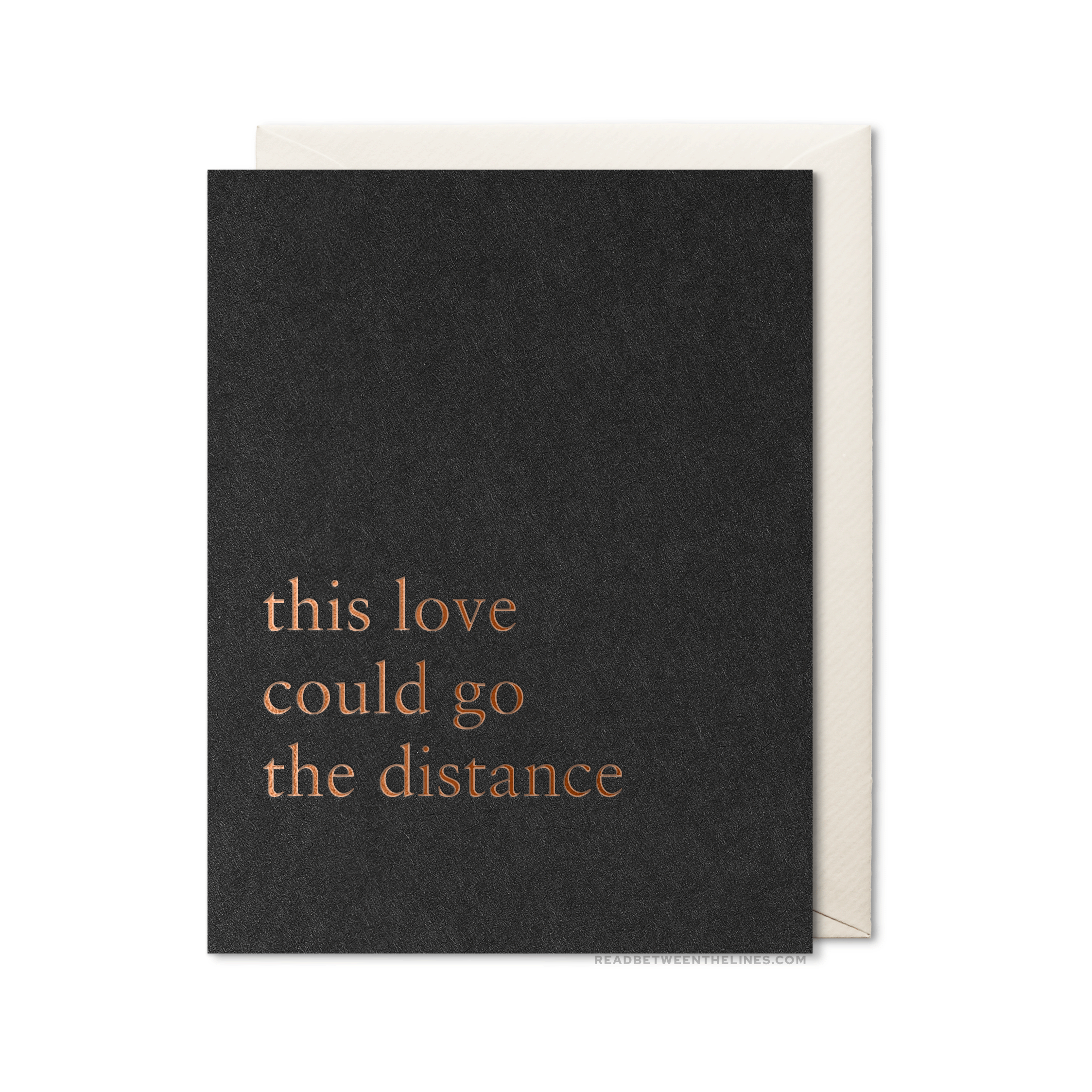 • Letterpress card printed by hand in Texas • Copper foil on white archival-quality cardstock • Folded 4.25" x 5.5" card (A2 size) • Blank interior • Soft white envelope • Packaged in protective cellophane sleeve