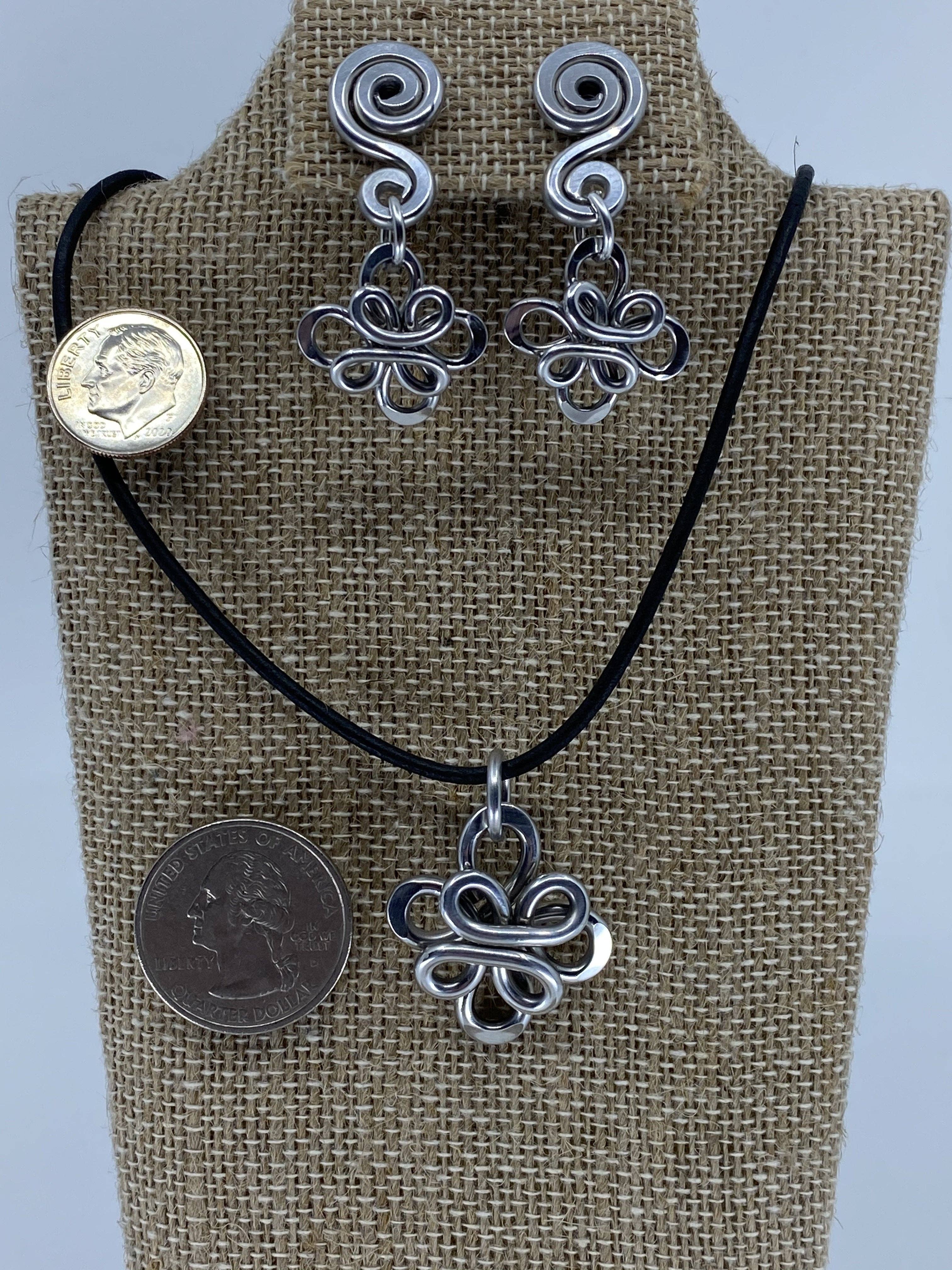 * All our jewelry is made from an extremely Hypoallergenic aluminum. * All Ear wires are surgical stainless steel and come with rubber stoppers. * All pendants come with a leather cord in a variety of cord lengths and colors. * USE DROPDOWN ARROW TO CHOOSE YOUR ITEM