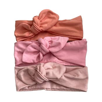 Our most popular colors and prints are now available in our buttery soft and stretchy knotted bow headwrap! Fits newborn - 3m (maybe even older depending on head size). Mix and match with your favorite knotted gown, swaddle, or outfit. Soft Cable Bow Details: * Sold individually * Fits 0-3 months * Pre-tied & sewn bow, will not come untied * 95% Nylon / 5% Spandex Care Instructions: * If necessary, we recommend hand washing or spot cleaning * Hang Dry All sales are subject to MAAP agreement found here: https://cadenlane.com/pages/wholesale-maap-online-agreement
