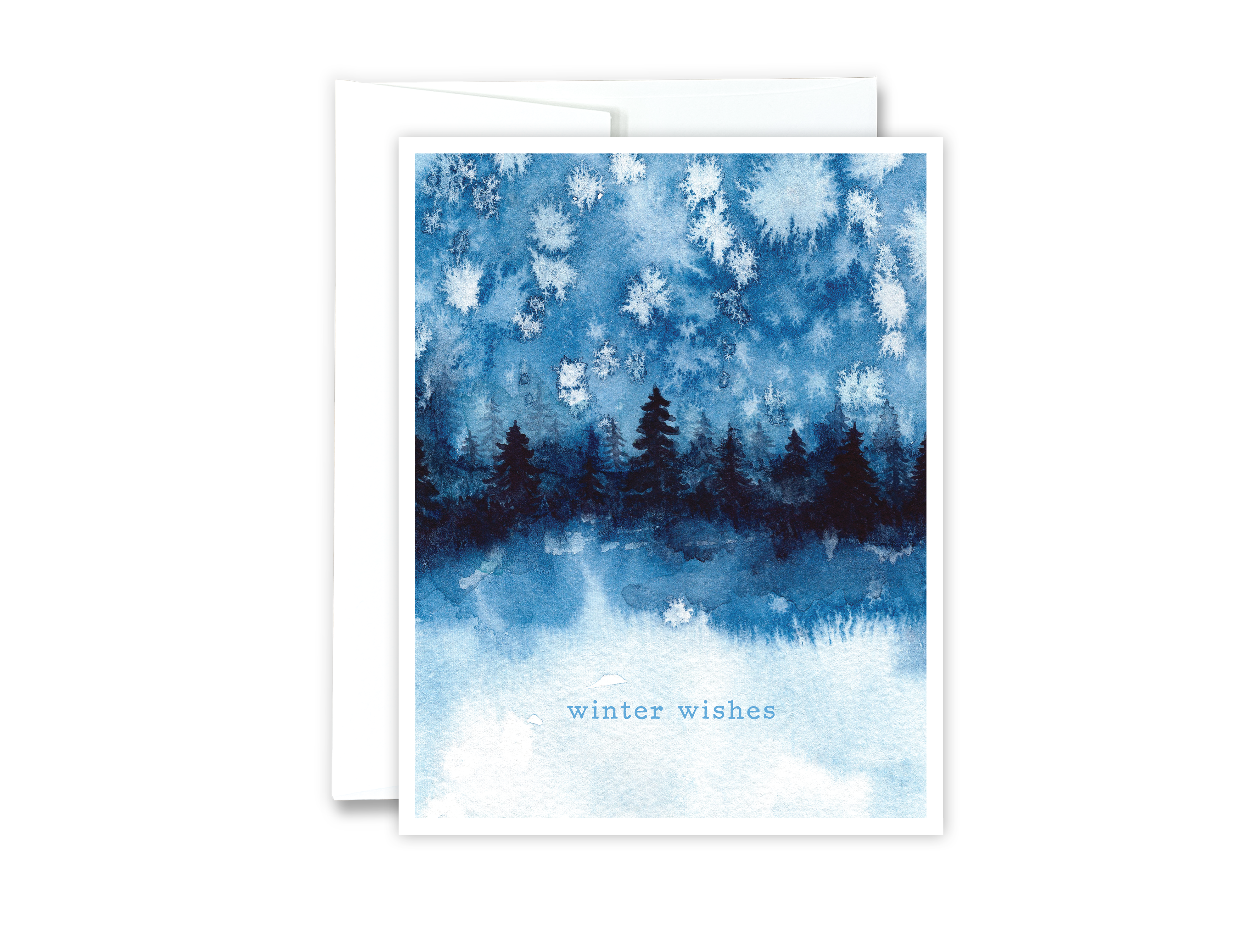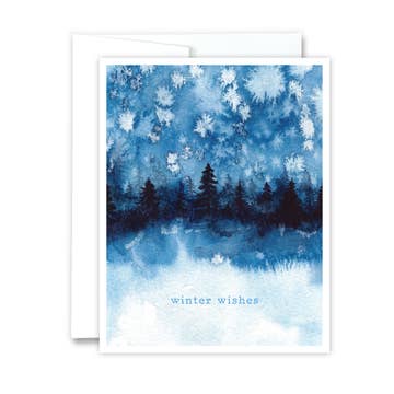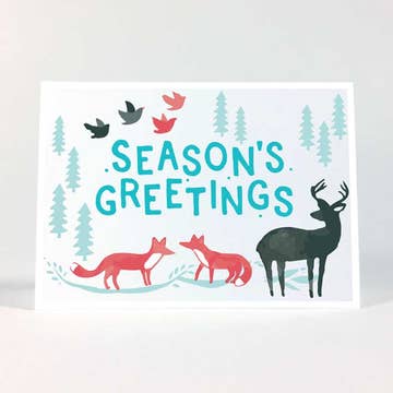 This watercolour fox is wearing a blue scarf to stay warm in the snow. Season's Greetings is on the globe front. This A7 card is blank inside, and coated only on the outside, making it easy to write inside. Details: - 5x7" / A7 - white envelope - blank inside - original hand-rendered artwork by Christy Obalek