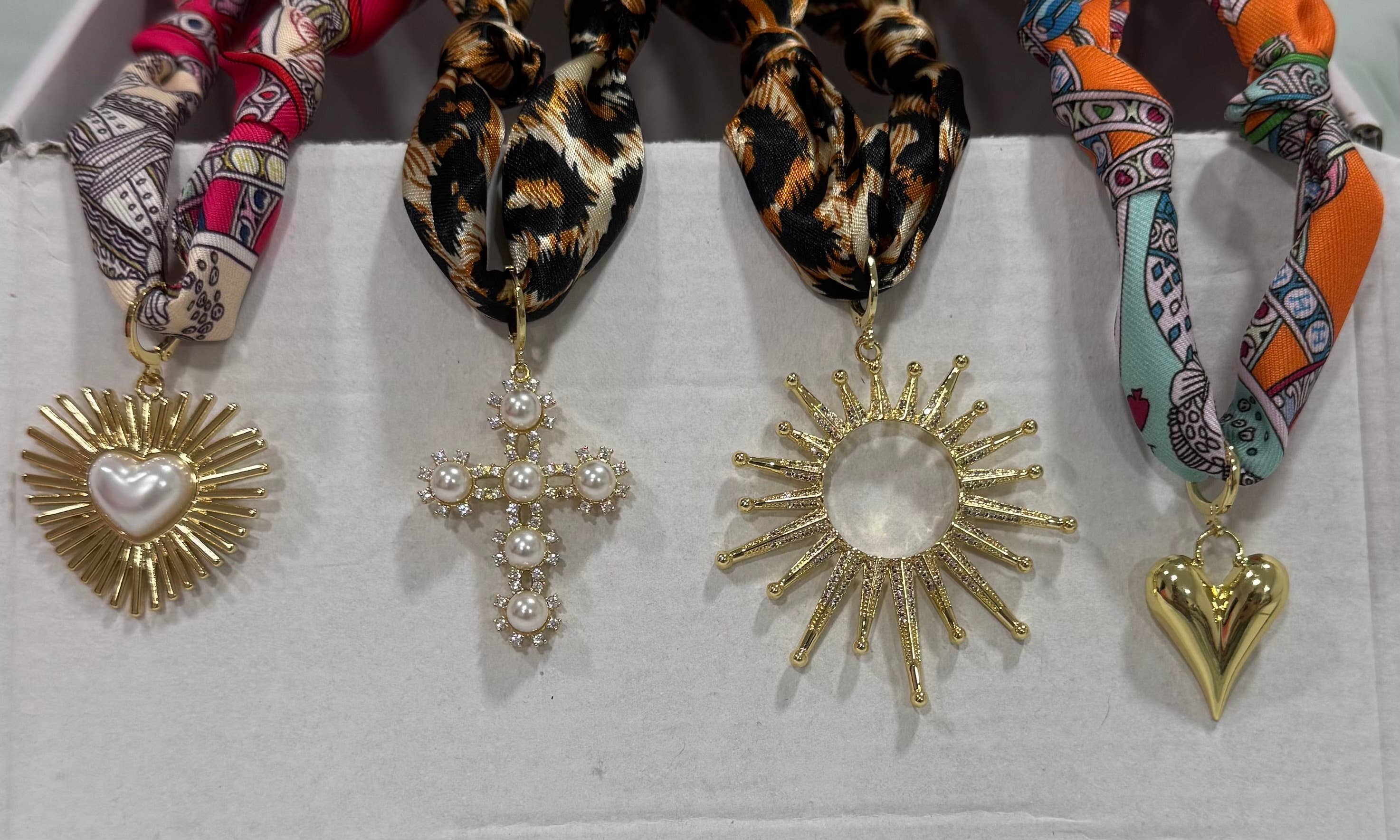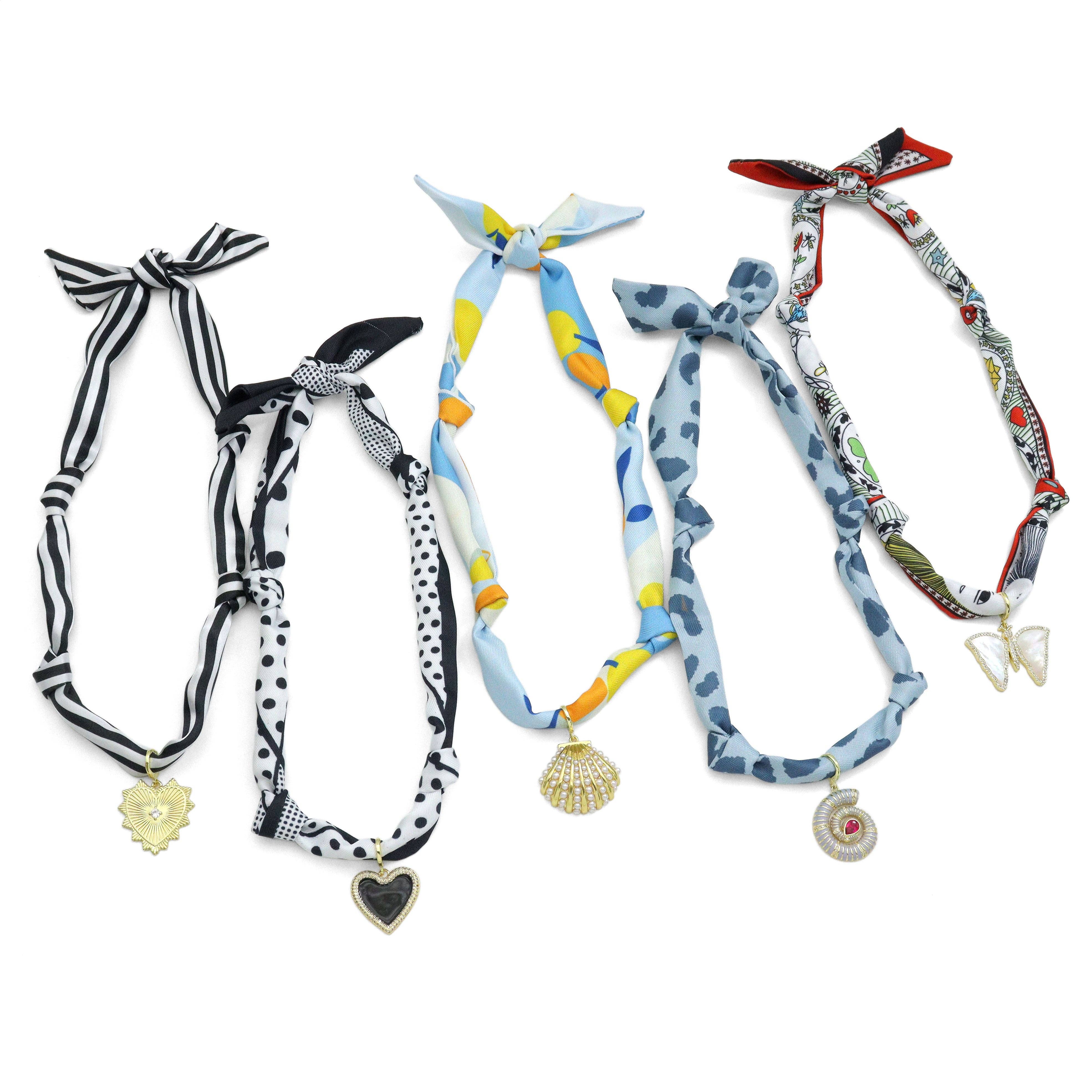 ⚠️ Note: Due to listing limitations, small outer charms cannot be added directly from this page. you can add from the link:https://www.faire.com/product/p_6dbj4y74wx?refB=1 we will complete the look for you. Why You’ll Love It: ✅ Adjustable knot lets you wear it your way ✅ Interchangeable 18k gold-plated charms ✅ Lightweight emulation silk – soft and breathable ✅ Travel-friendly, no tangle, packs flat PLEASE NOTE: This type of long silk scarf is sewn first, with a small opening hole left at the end. The patterned side is then turned inside out through the opening to hide the stitching. Most long silk scarves on the market use this technique, with a small opening hole on the side. It does not affect normal use. if you mind this opening hole, pls do not buy.