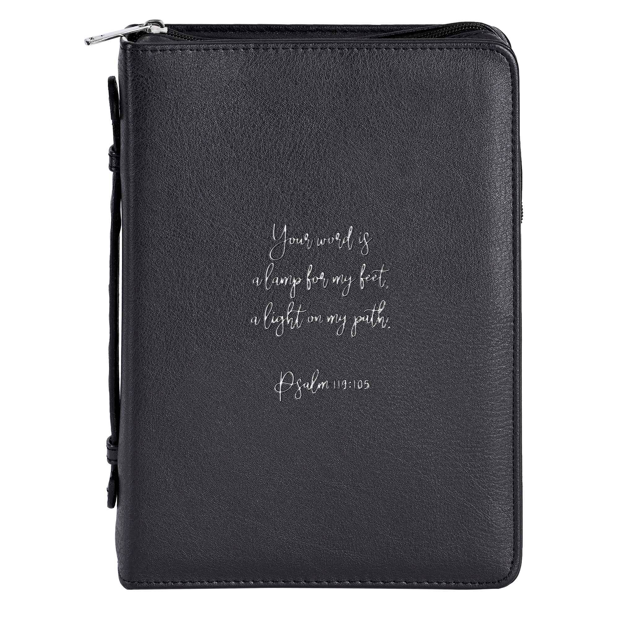 White Dove-LIGHT GREY BIBLE COVER WITH CROSS ZIPPER LARGE