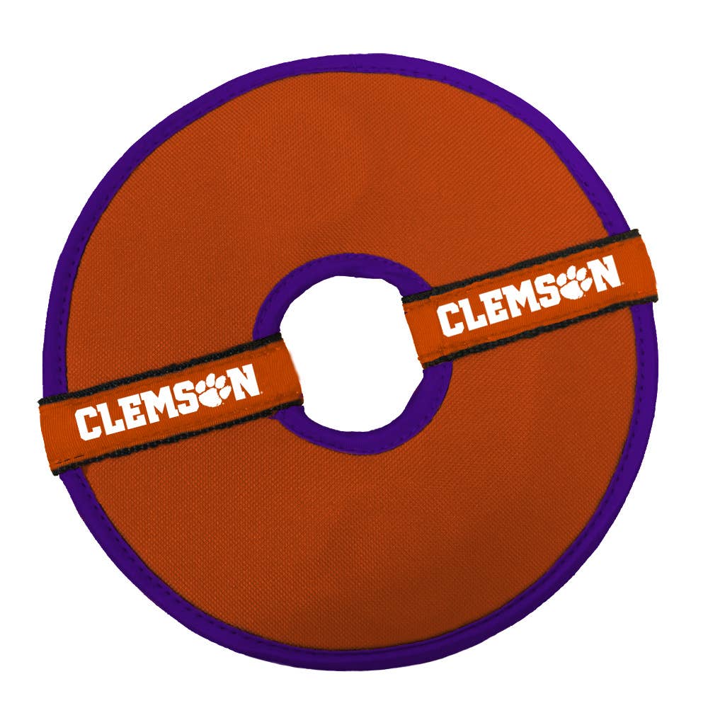 The Team Flying Disc Pet Toy is a great way for you and your pooch to get exercise. Whether it's the tailgate, the backyard, or the park, your pets will find this flying disc pet toy entertaining for hours of play! This officially licensed pet toy is made of durable polyester and is nicely weighted for long frisbee flights, this toy will give you and your dog a great workout! Features a sturdy rope to keep disc shape and boasts a full-color team logo. Diameter: 9.25"