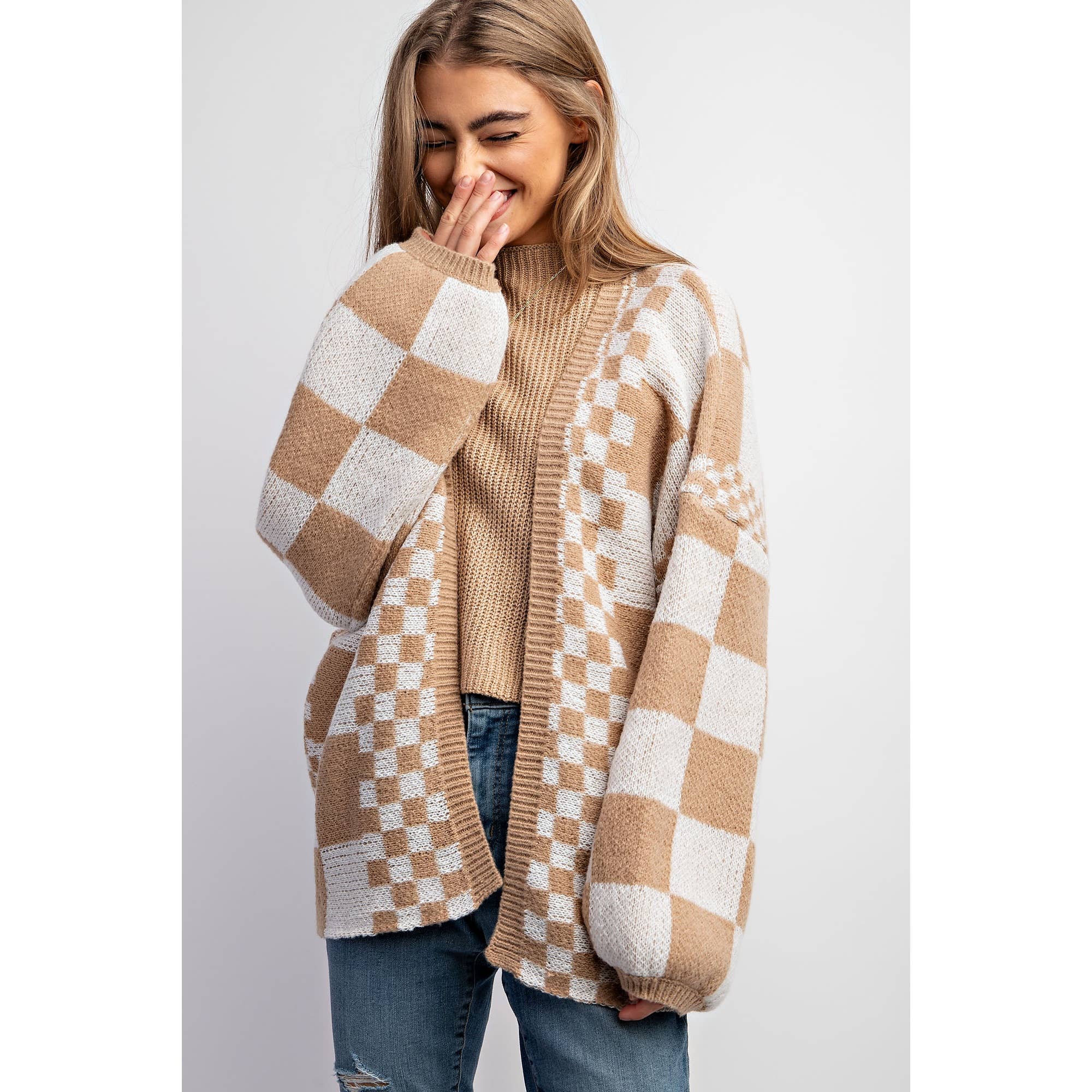 Checker Colorblock Button V Neck Sweater Cardigan | S-XL