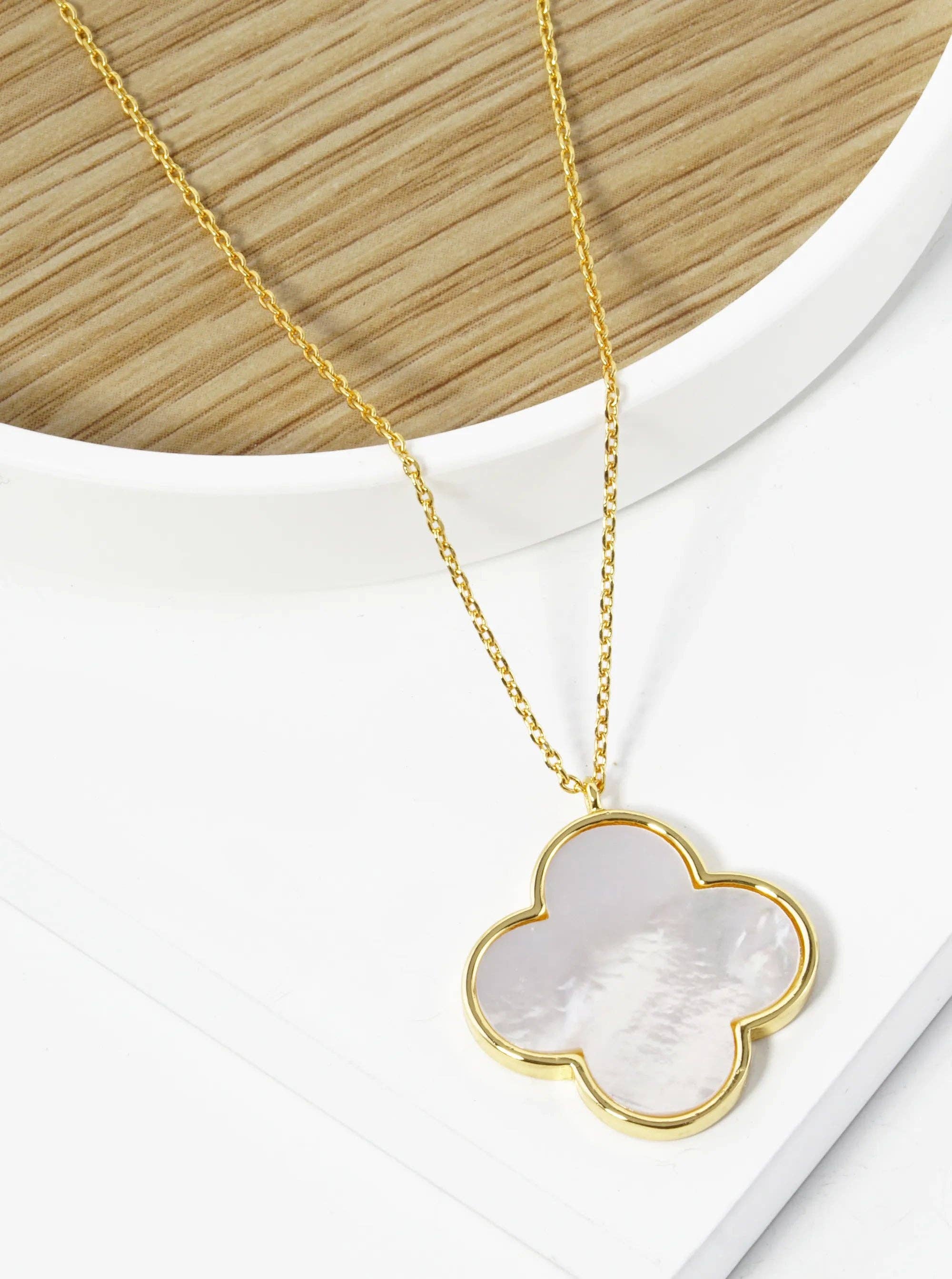 Wholesale Gold Dipped Mother of Pearl Quatrefoil Pendant Necklace