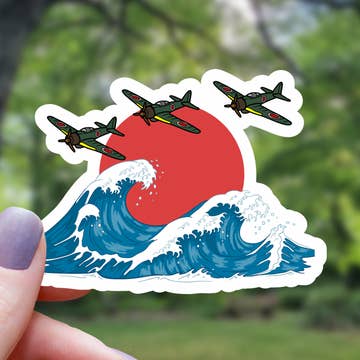 BellavanceInk: Vintage P40 Warhawk Flying Tigers Fighter Airplane Vinyl Sticker Illustration Measures about 7 x 2.5 Inches Our custom stickers feature a special laminate that protects them from exposure to wind, rain and sunlight. You can even put them in your dishwasher and have them come out looking brand new.
